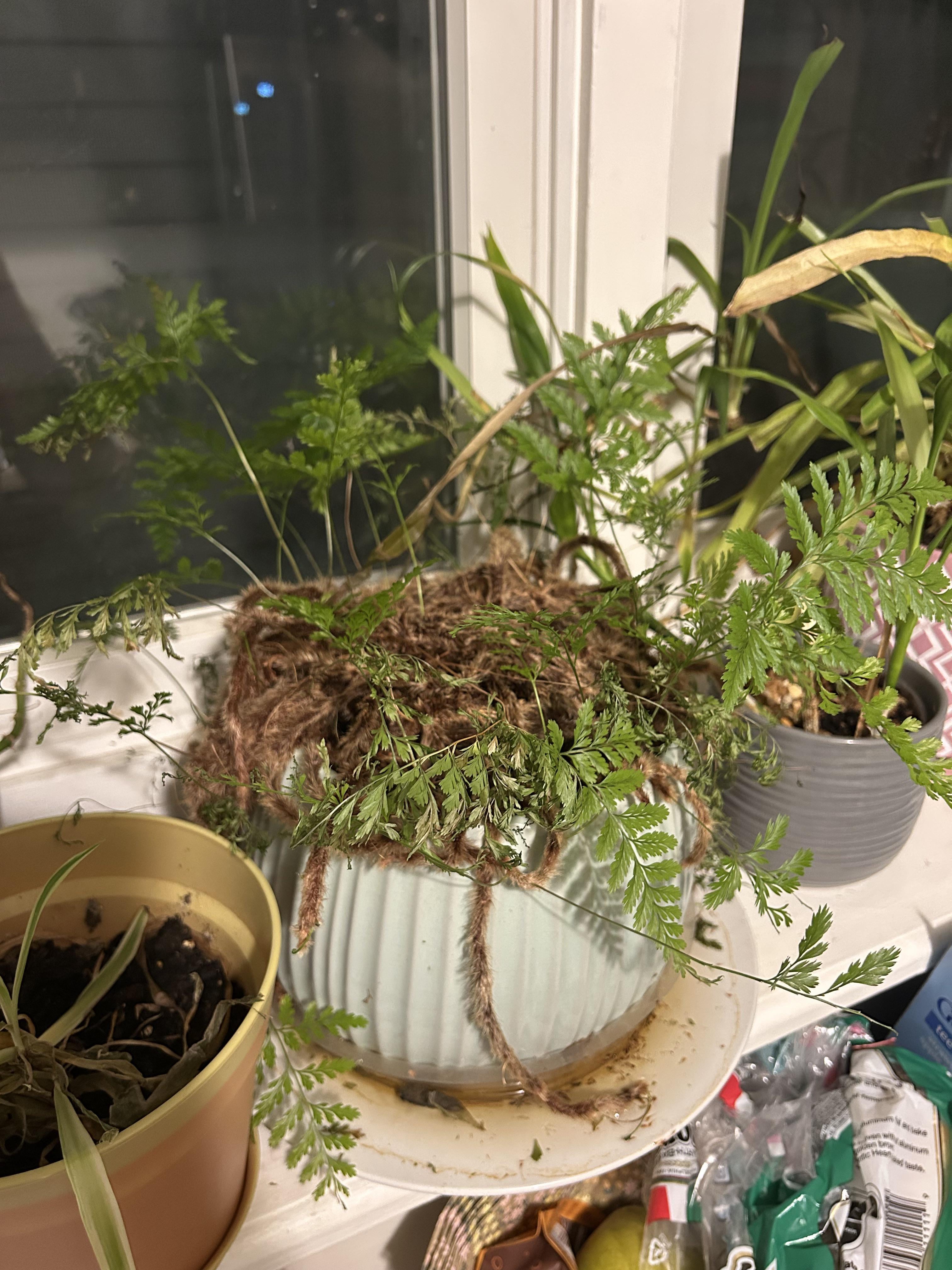 こんにちは r/観葉植物私は数年前からウサギの足のシダを飼っていますが、最後の6か月ほどまでは繁栄していました。今では、枯れた葉を摘むのをやめられず、新しい成長があったとしてもあまり見られません。購入してから同じ鉢・土で育てていますが、特に問題はありません。葉はほとんど大丈夫でまだ強いように見えますが、時々葉が落ちたり折れたりすることもあります。かつては青々と茂ったシダが今では本当にまばらになっているので、完全に枯れてほしくないのです。とても好きな植物で、全くの思いつきで購入しました。
