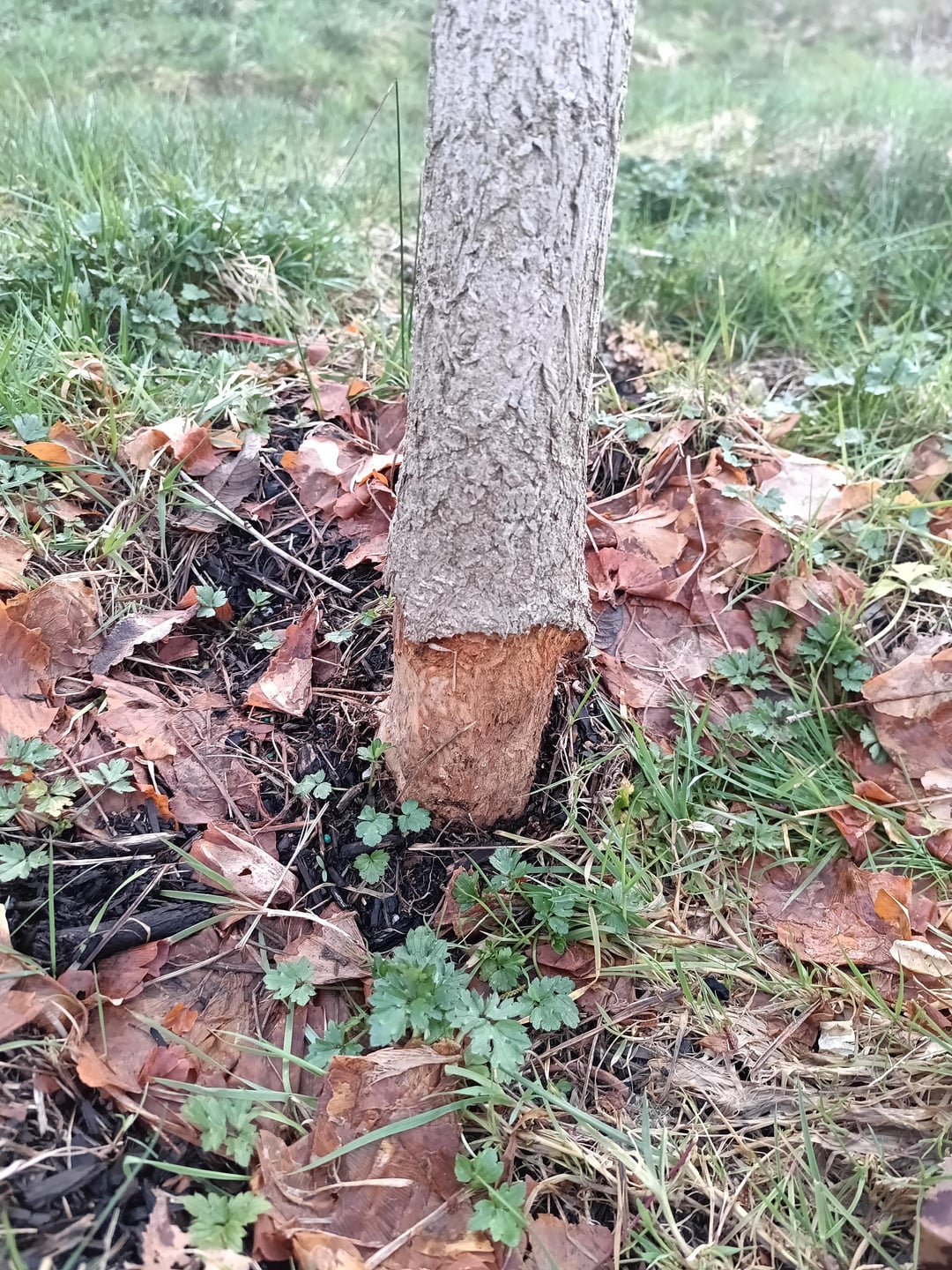 去年の夏にこのイチョウの木を植えたときはとても興奮しましたが、今は…これです。ダメージは周囲にまで広がります。今のところ新しい芽の兆候はゼロです。杖にする前に何かできることはありますか?