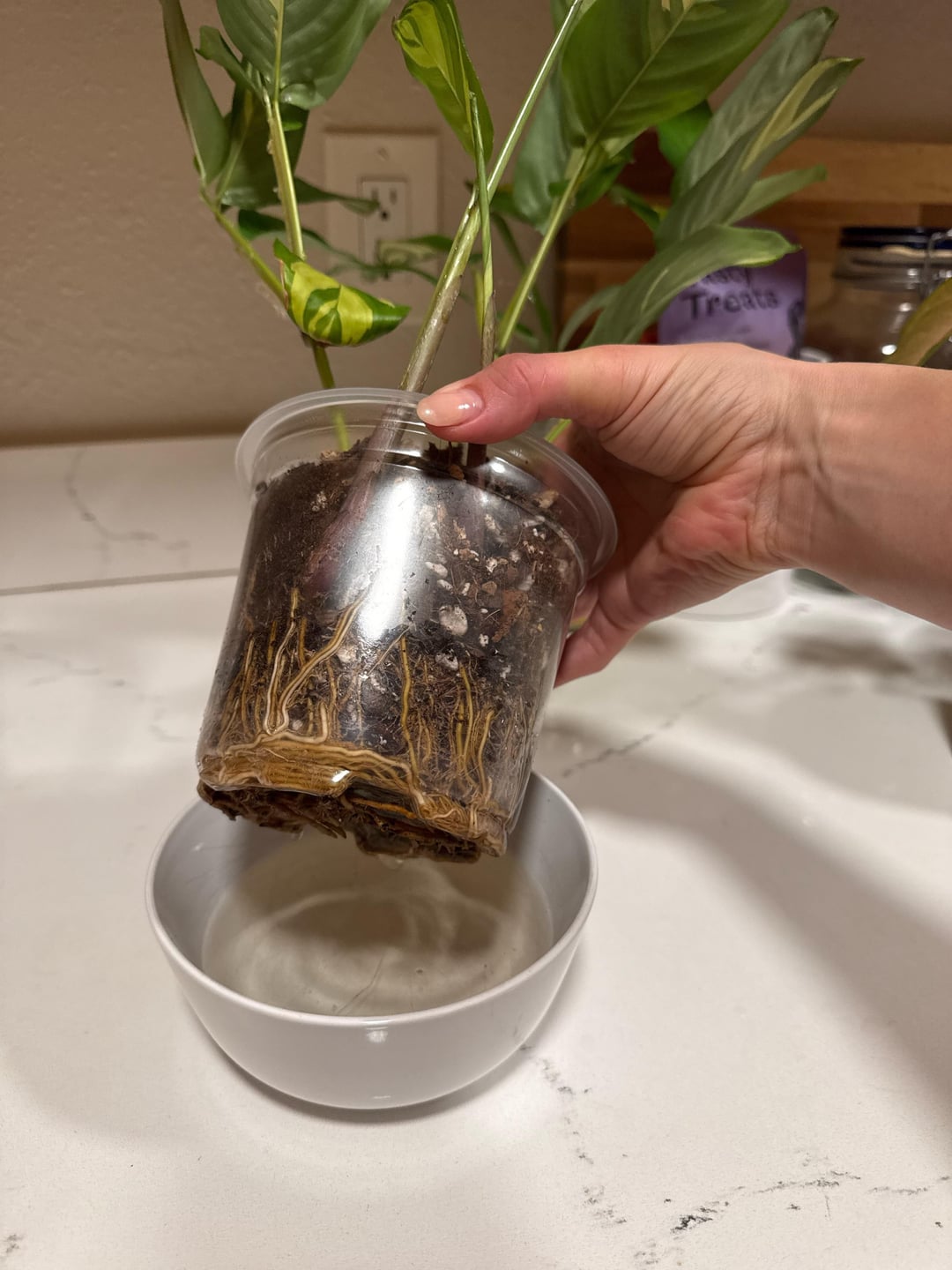 直接明るい光の下にありますが、明らかに非常に脚が長いです。葉の成長は素晴らしいのですが、根の成長が追いついていないようです。この4ヶ月で2回植え替えをしました。植物の植え替え、切り取り、潜水などに関するヒントはありますか?