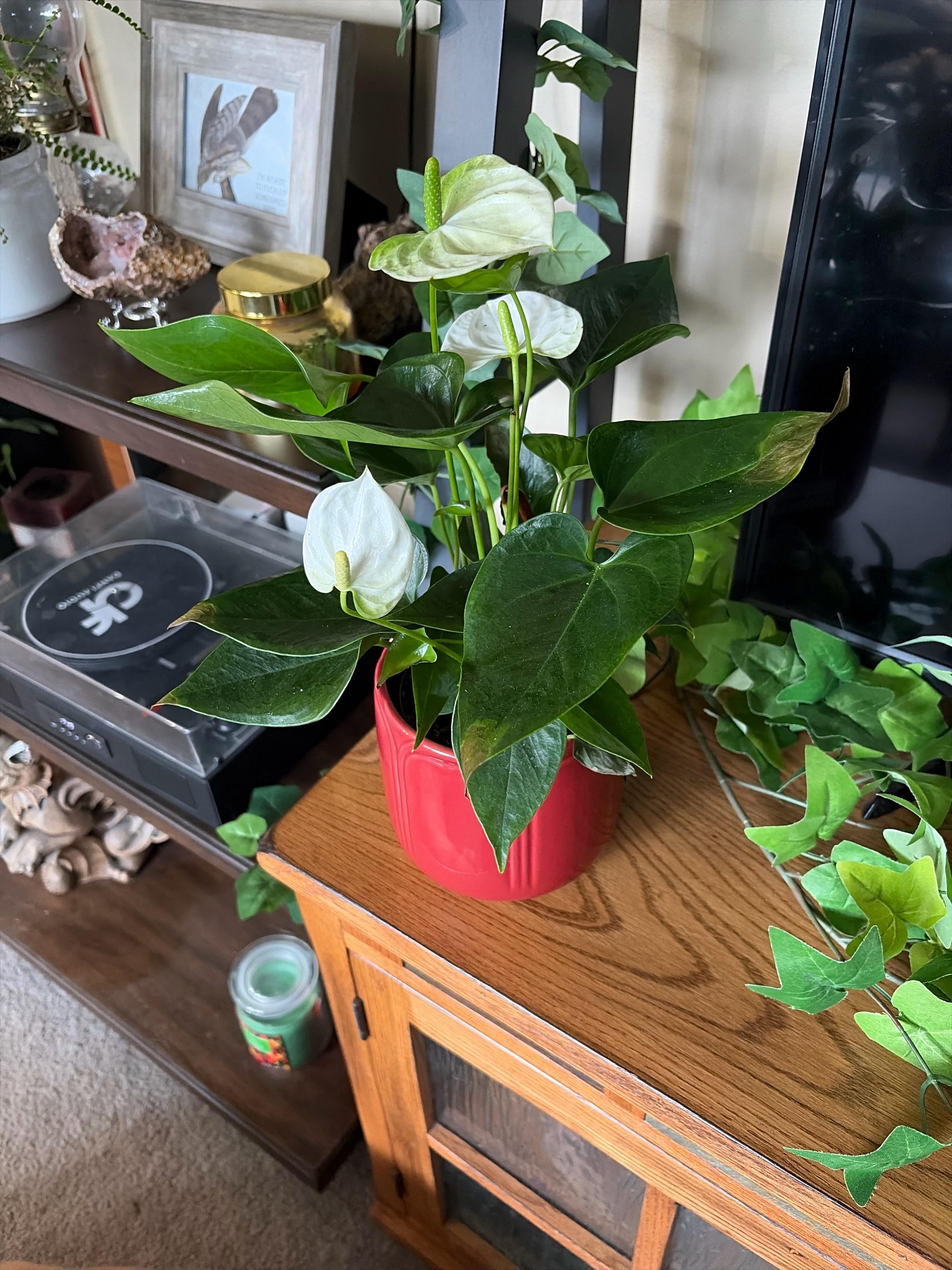 この小さなアンスリウムはロウズで半額で売られていました。理由は分かりませんが、11.00 ドルですか?はい、お願いします!