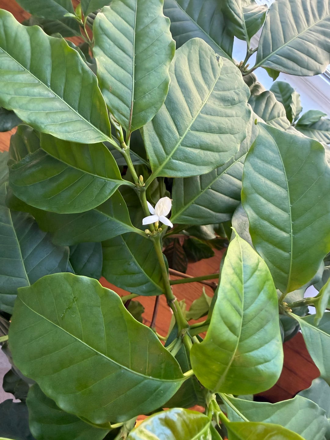 とても満足しています。 5年以上育てているコーヒーの木が、私に花を咲かせてくれます 🫣😭