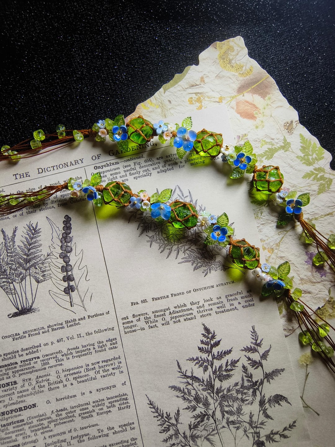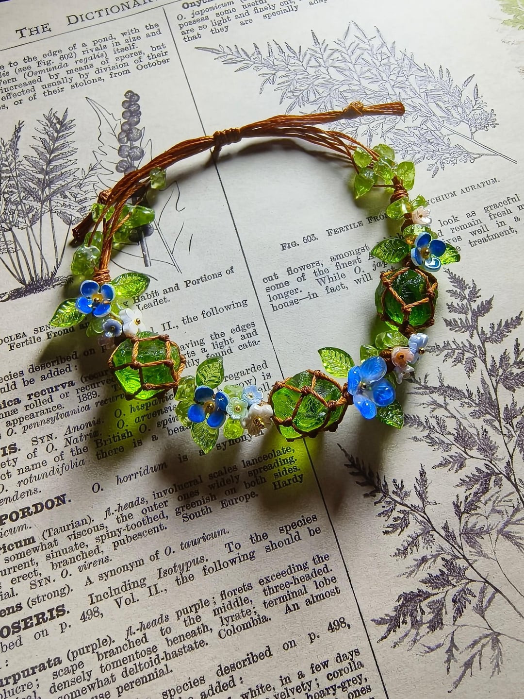 クリスタルとワックスコードを使ってブレスレットを作りました。まるで蔓が頑張って成長しているように見えませんか? 🌿