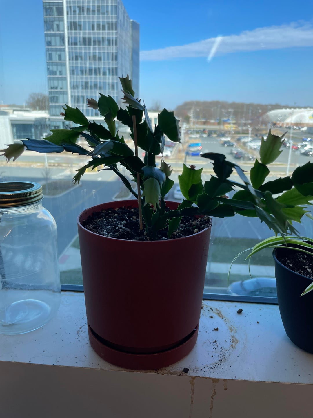 母が作ったクリスマスサボテンから挿し木してもらったのですが、とてもうまく繁殖することができました。より多くのセグメントが成長しました。ただし、高さは伸びていますが、幅は広くありません。倒れないようにしているのは木ダボだけです。サポートを必要としないように、より堅牢にするにはどうすればよいでしょうか? 最初の 2 枚の写真は現在の工場の写真です。 3枚目の写真はオリジナルのカットサイズです。