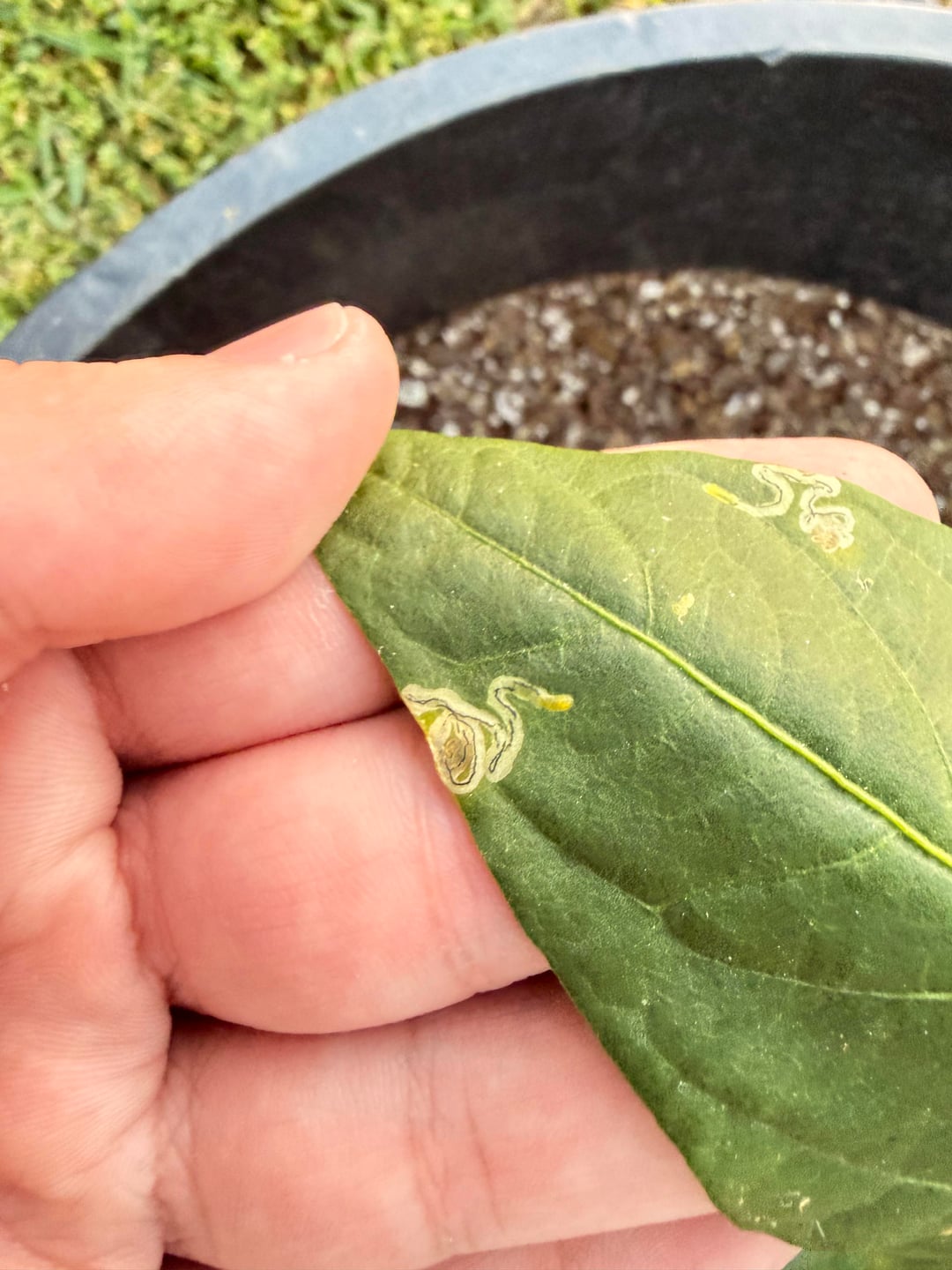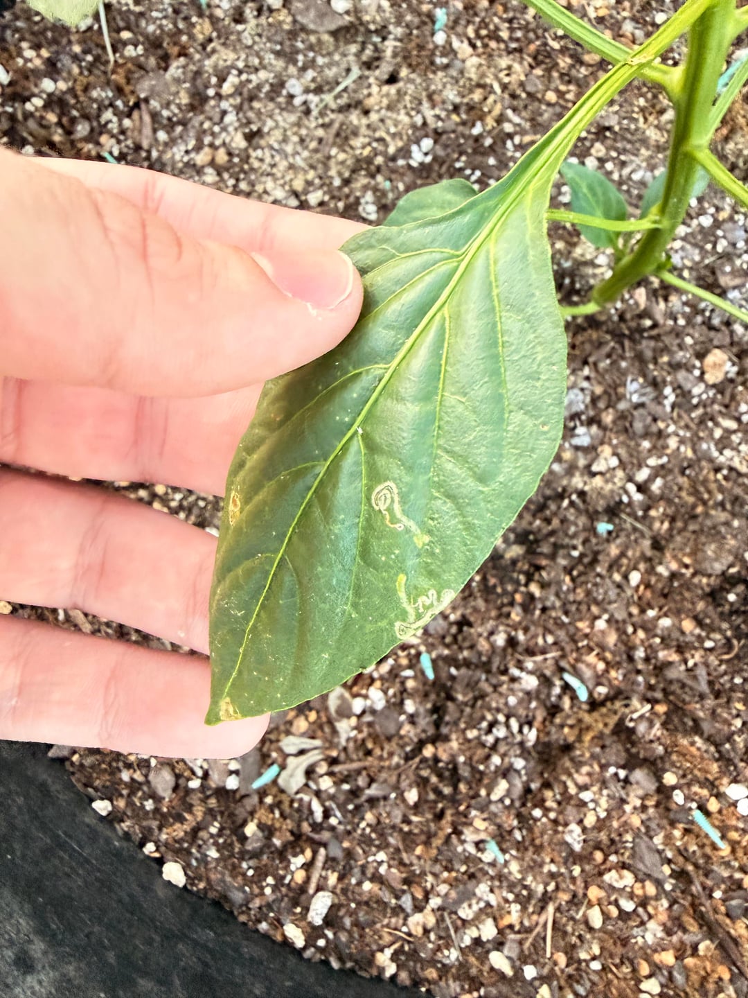 やあ、うちのピーマンとハラペーニョの両方に、白い斑点の中に細い黒い線が入っているのに気づきました。誰かそれが何なのか教えてもらえますか?別々の鉢に植えていることを考えると、両方の植物にこれらの斑点がどのようにして現れるのか、非常に奇妙に思います。