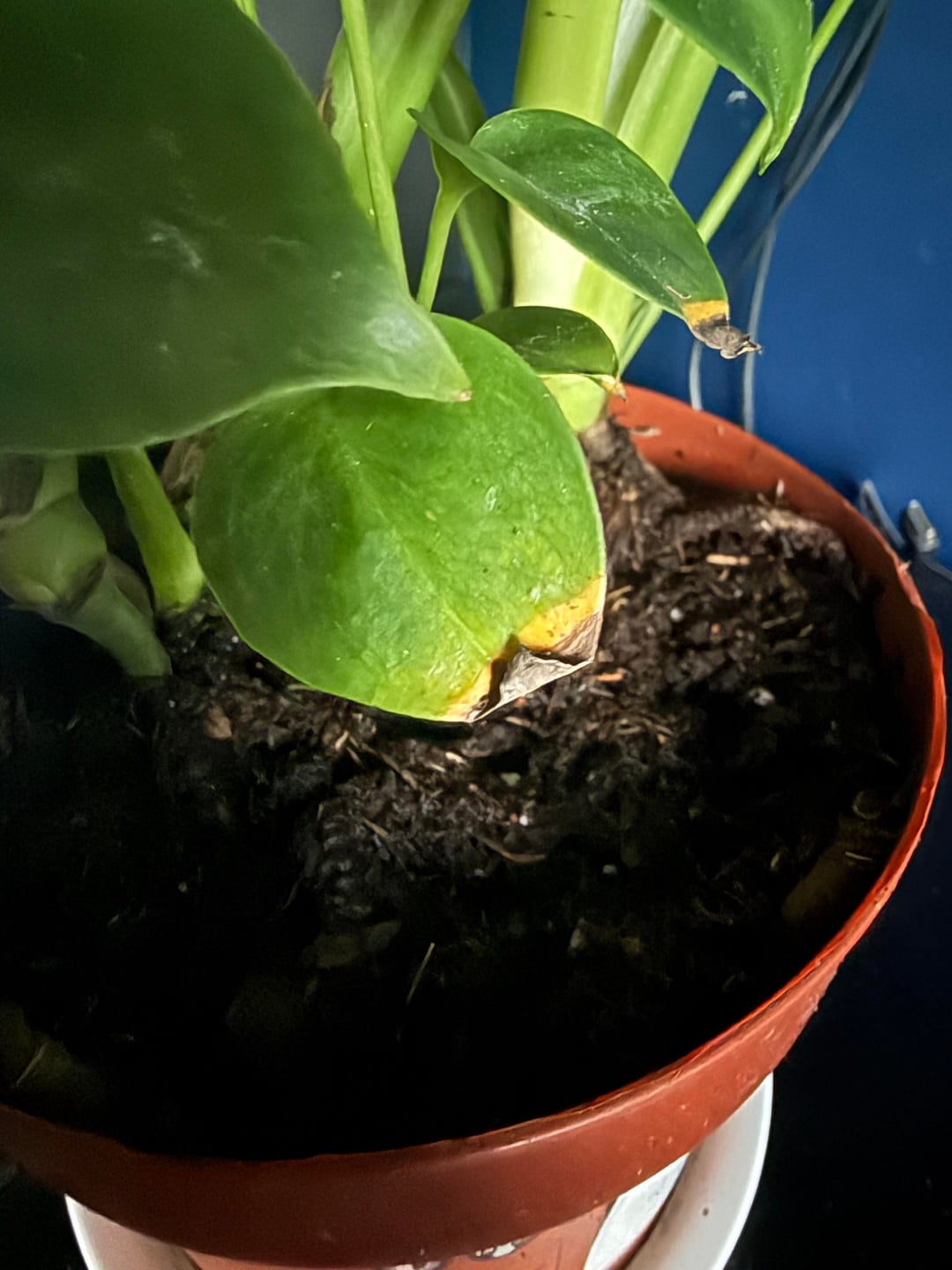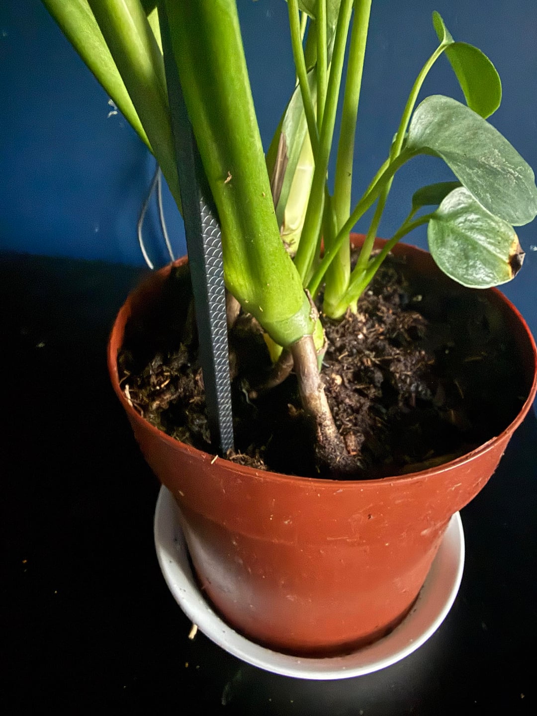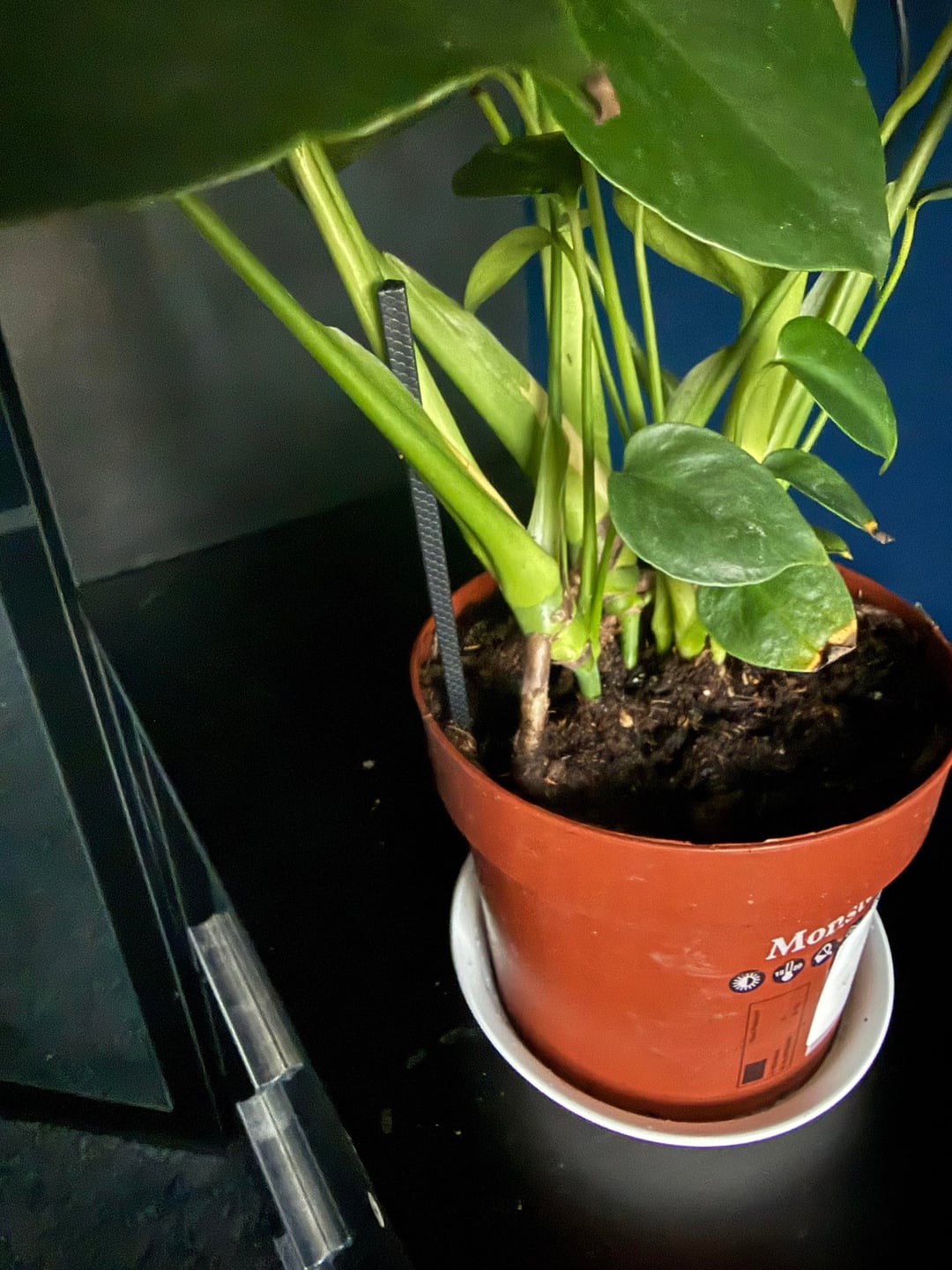 皆さん、このモンステラを £4.50 (バーゲン品) で購入したのですが、茎の 1 つがかなり傾いていることに気付きました。今のところ箸で支えていますが、これを支えるのに役立つ他のオプションはありますか?また、葉が黄色くなっていますが、完全に乾いていたので水からではあり得ません???モンステラの飼い主さんを助けてください。