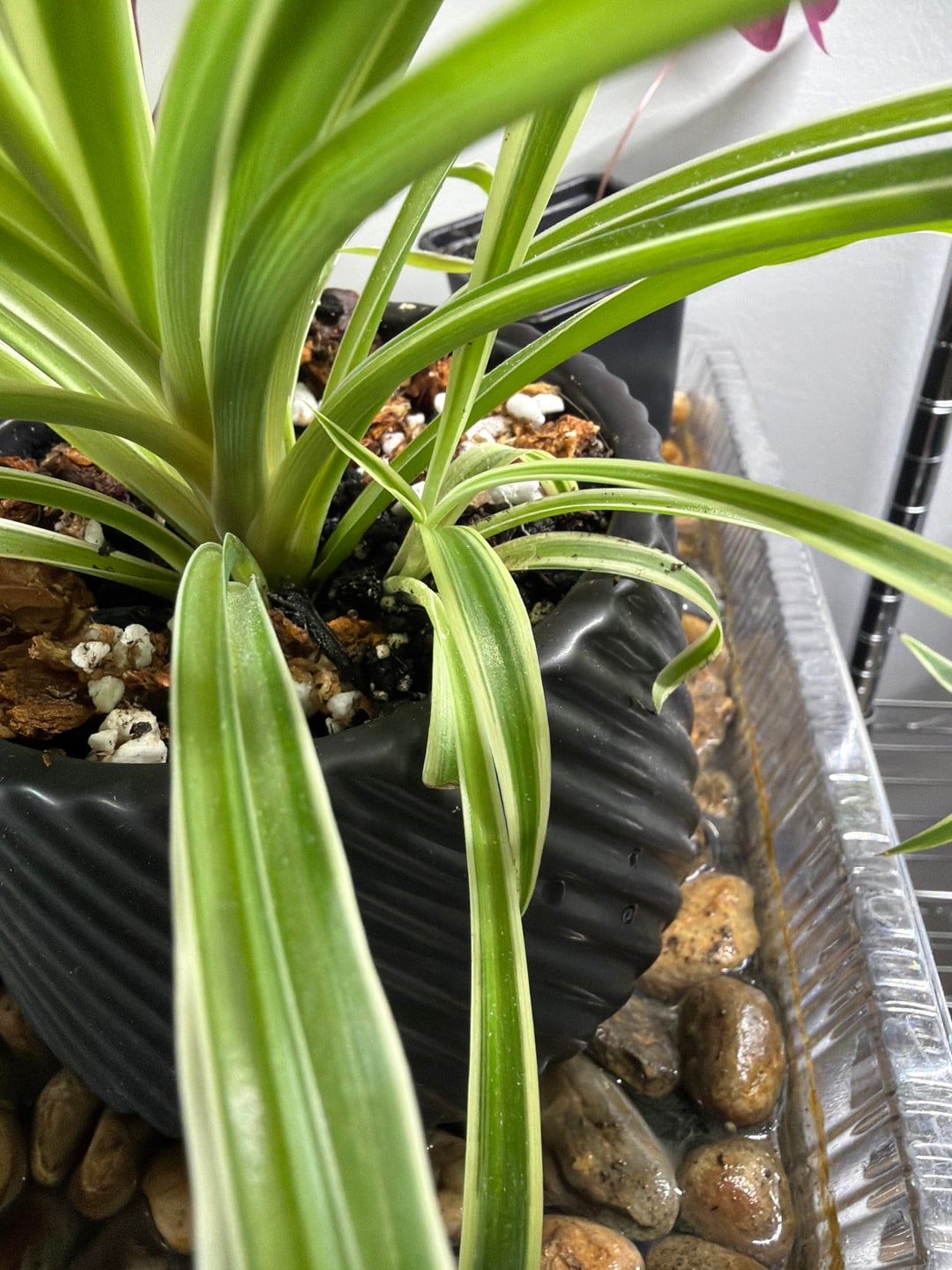 1-2: クモの植物。このクモの子を職場の植物から取り出しました。これは、私の約1歳のクモの植物と一緒に、養子縁組した弟として鉢に植えられました。