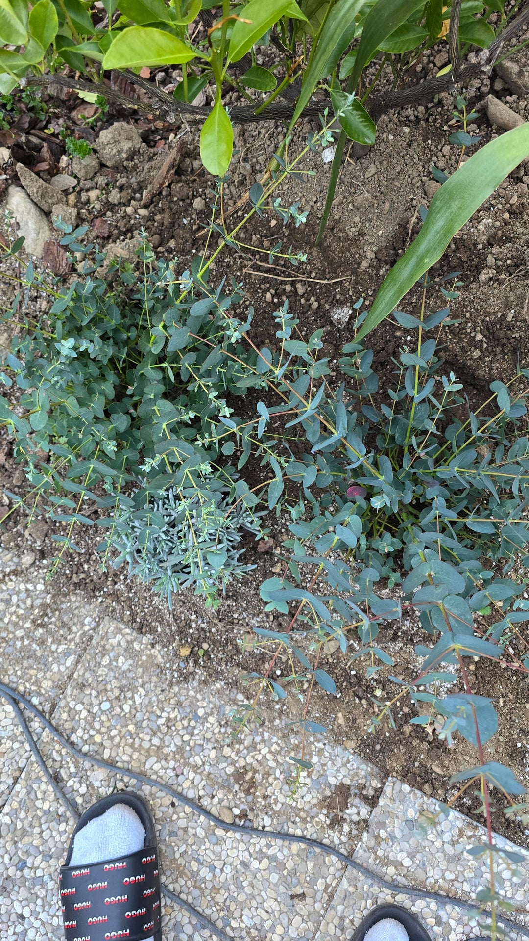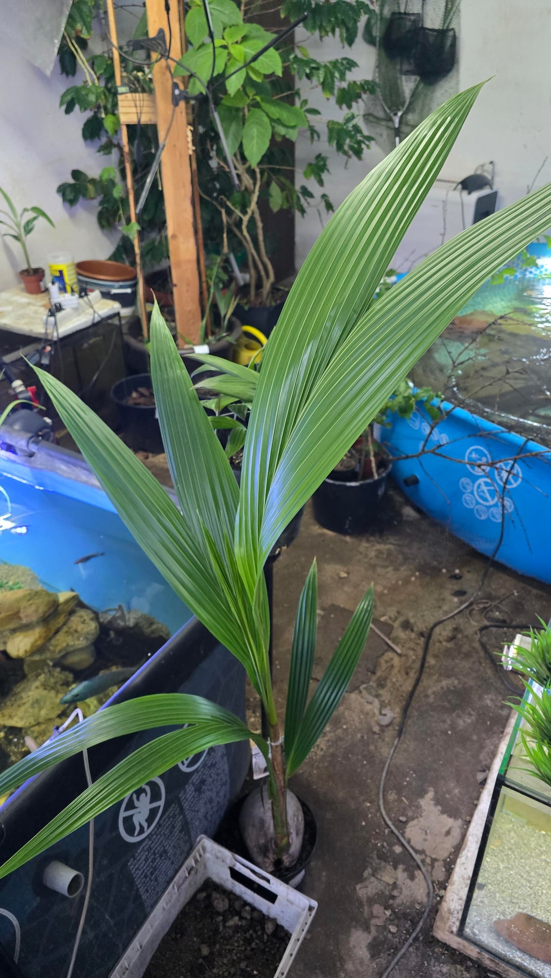 従業員割引でユーカリ 2 本、ラベンダー 8 本、高さ 1 メートルのココヤシ、斑入りのフロリダ バナナを 60 ドルで手に入れました。
