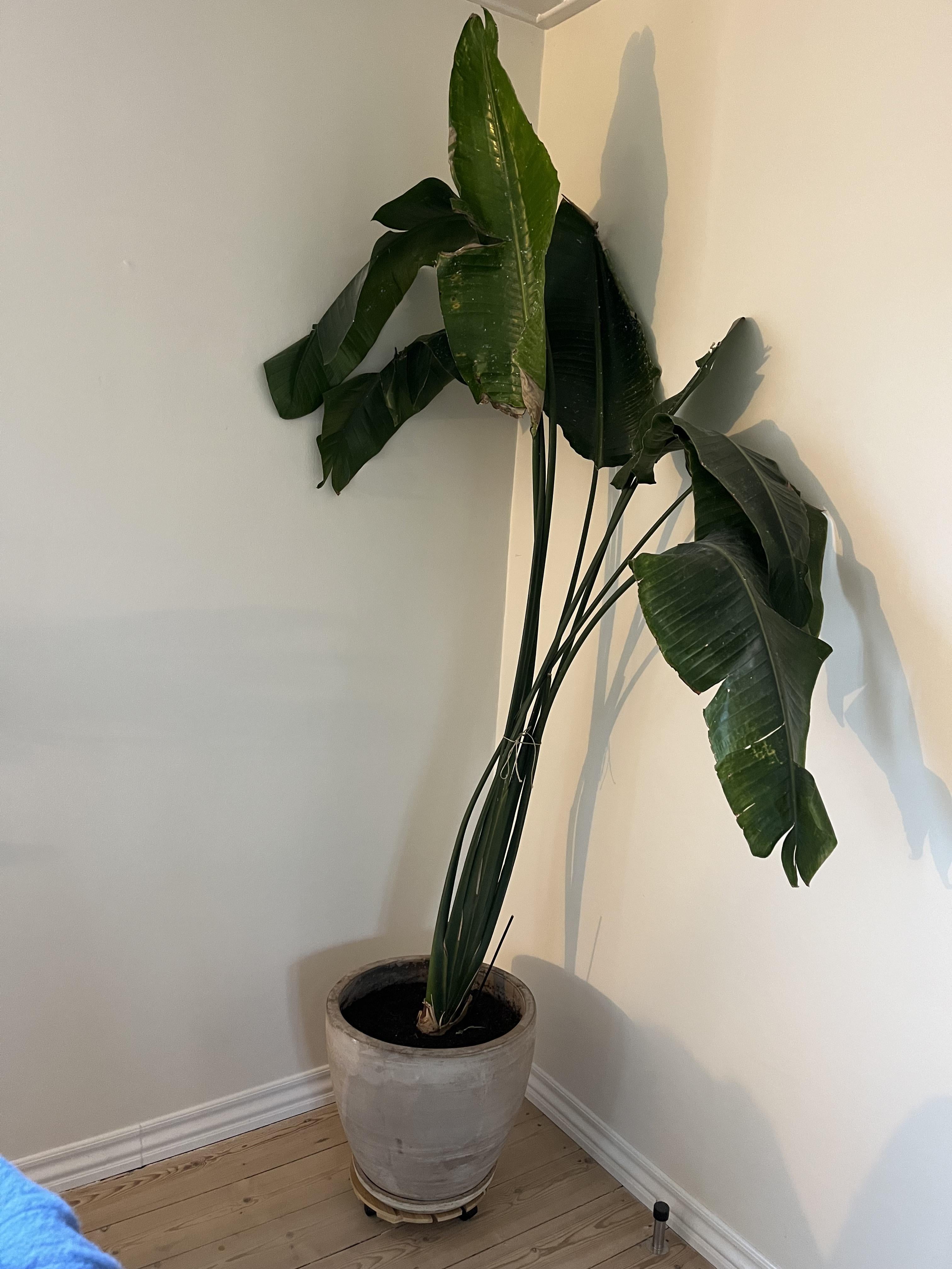 やあ! そこで私の質問は、この醜いストレリチア・ニコライをどうすればいいでしょうか? 枝があまりに広がっていたので、真ん中で紐で集めなければなりませんでした。もちろん、これはあまり見栄えが良くありません。ポットが低すぎて適切にサポートできないためでしょうか?問題を解決するにはどうすればいいと思いますか? さらに、葉のいくつかは茶色で、端が擦り切れています。そのような植物を再び美しく見せるにはどうしますか? よろしくお願いいたします。 🙏🏼