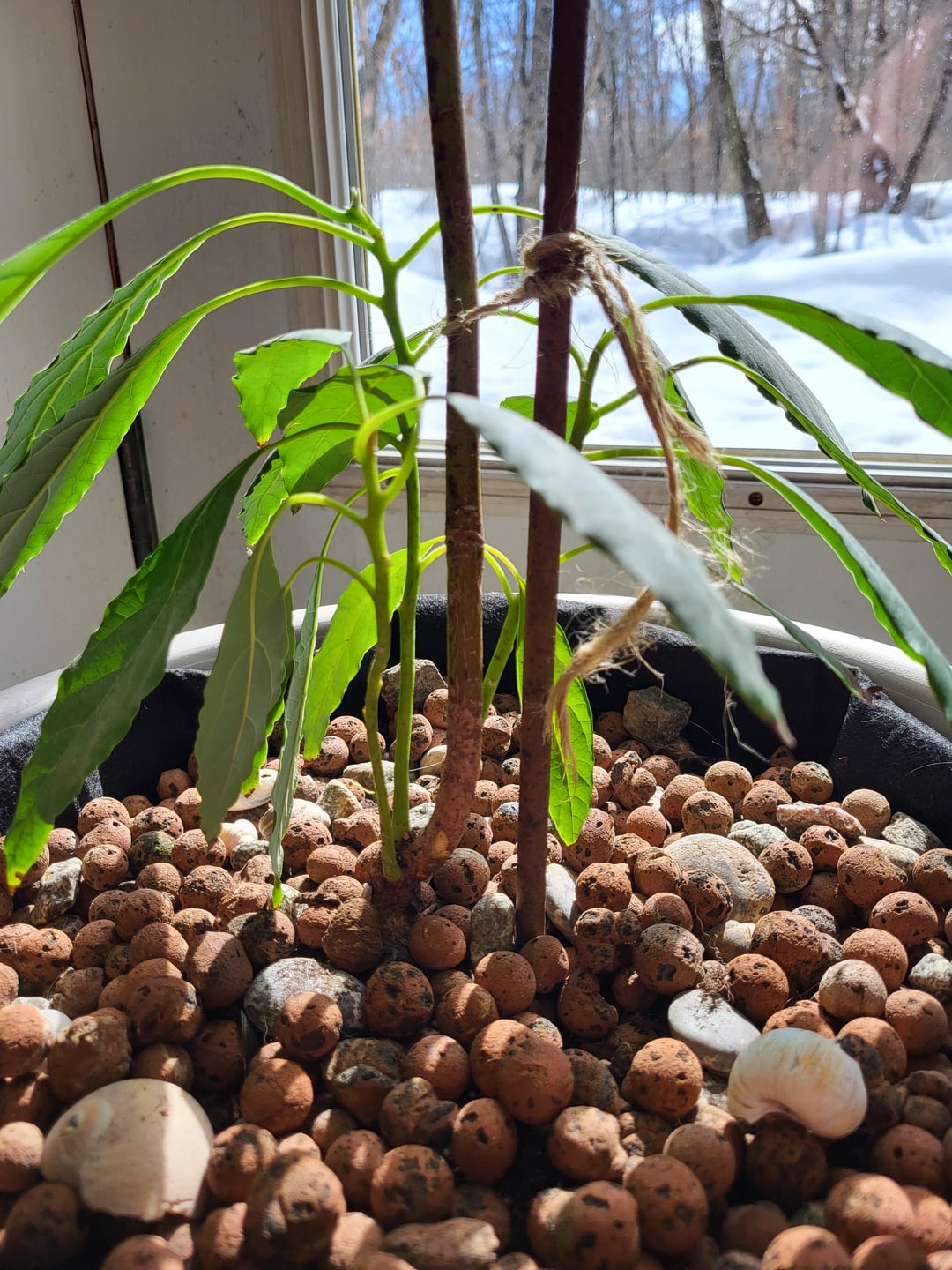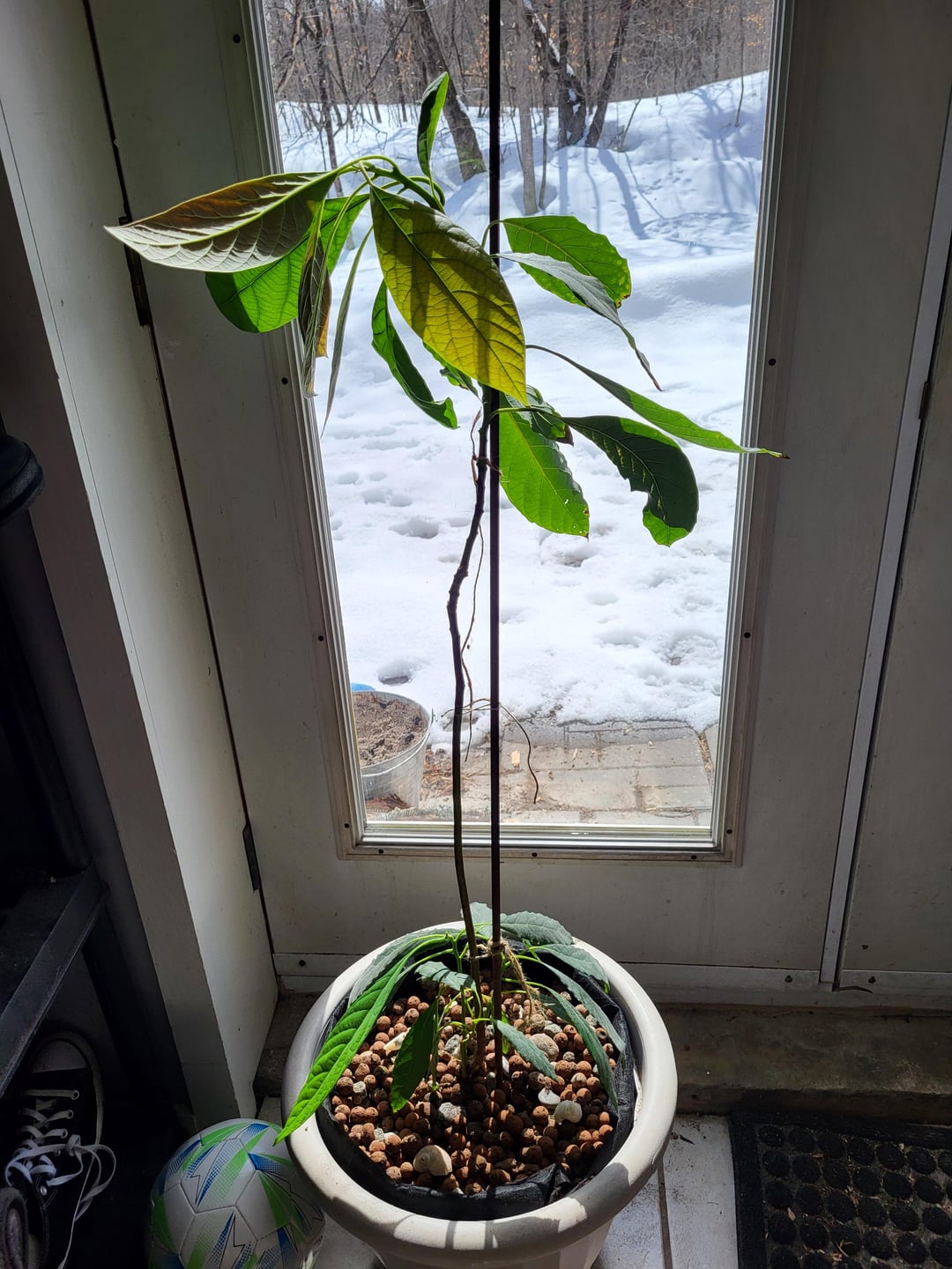 種から育てたアボカドの木を放置するのはやめようと決心し、植え替えて支柱を立てただけです。しかし、木の根元から出ている3本の芽についてアドバイスが必要です…残すか、それともトリミングするか?実がなるかどうかは気にしません(それが重要なら)、もう少し健康で幸せになってほしいだけです。あるいは、大きな主茎が非常に紡錘しているので切り刻んで、新芽の1つを訓練することはできますか?助けていただければ幸いです