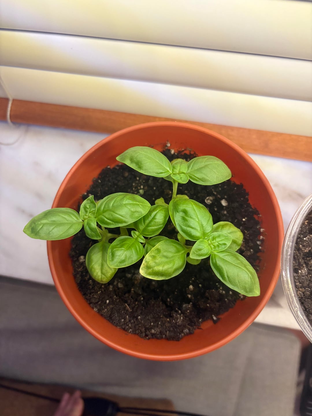 私はこのバジルを種から育てました。ご覧のとおり、1 つの房ははるかに良く成長していますが、すべてが苦戦し始めています。エッジの色が明るく、少しカールしているので、光が多すぎると思いましたが、光の露出を減らしましたが、うまくいきませんでした。私はここまで到達できたことをとても誇りに思っていますし、ゆっくりとした死を迎える彼ら全員を失いたくないのです。しばらく悪化してきました。今、片方の端に小さな茶色の斑点が付いています。ご協力をよろしくお願いいたします。