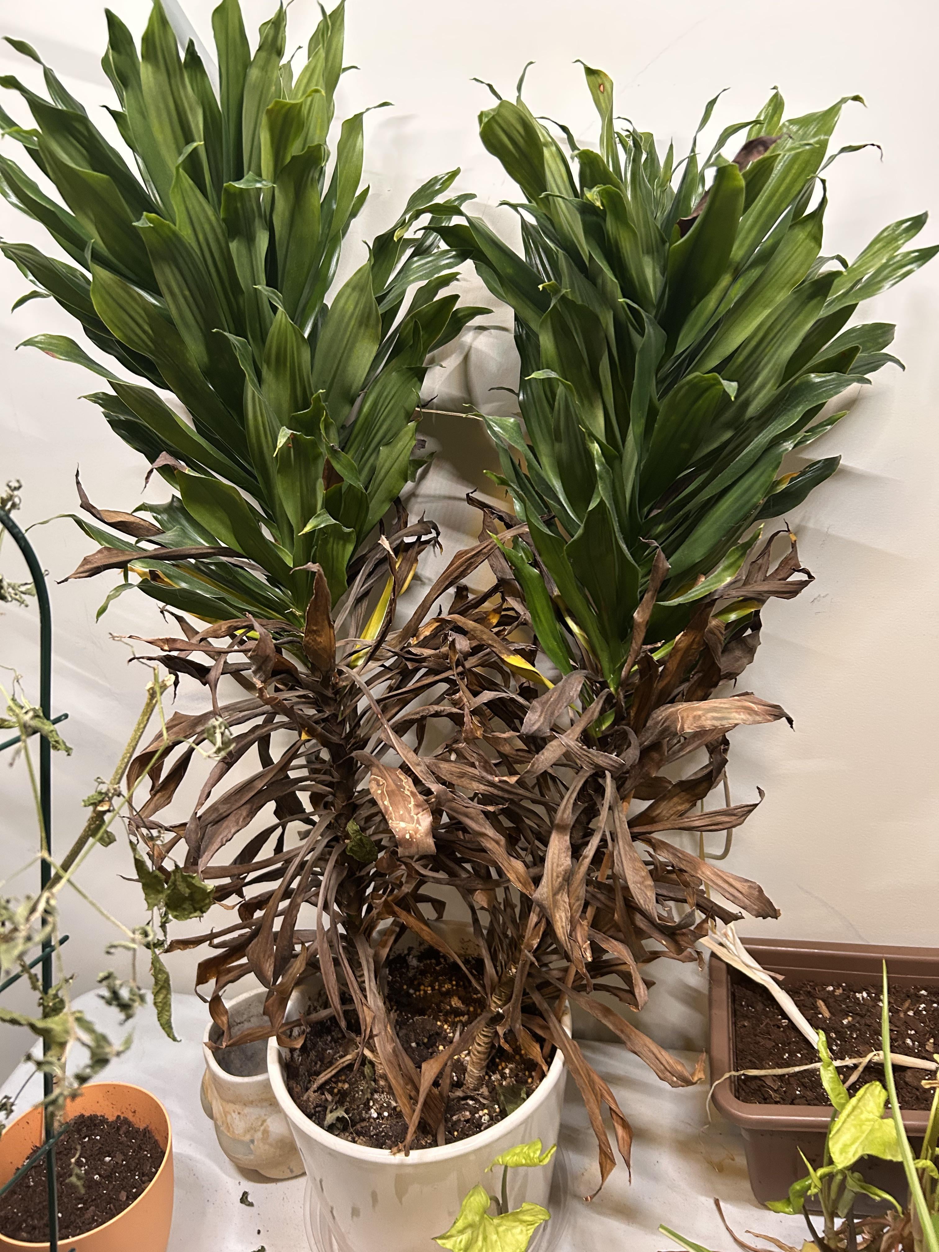 下の方の枯れ葉を全て取り除いて植え替えました。猫には安全ではないのでクローゼット刑務所にあります
