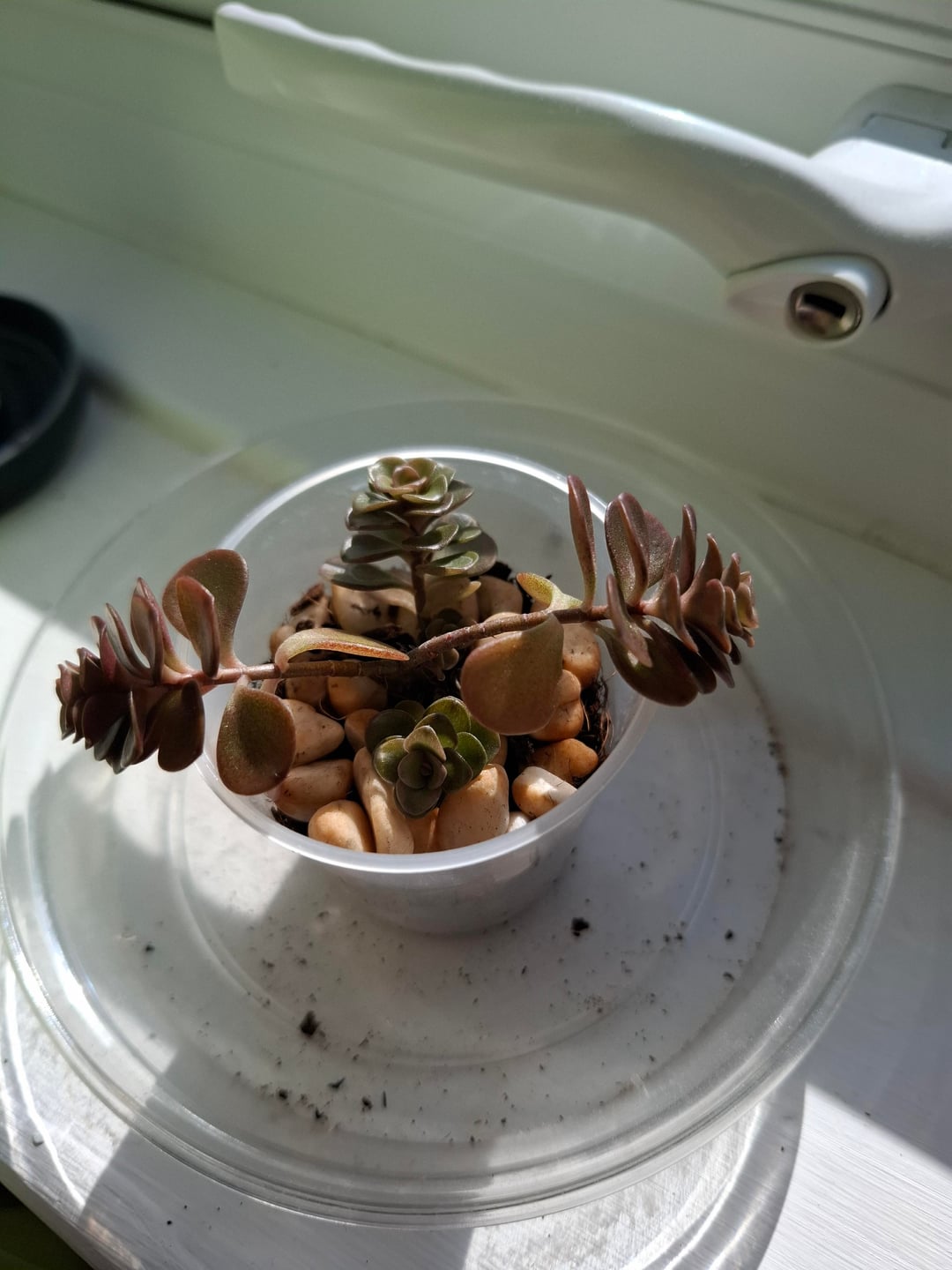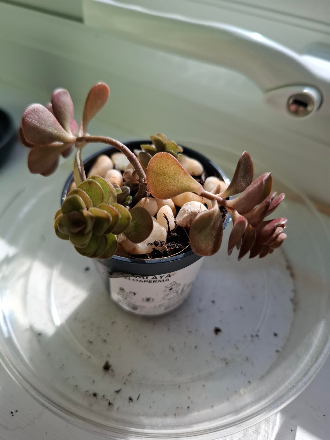 私の2番目の質問は、最近紫色に変わり、いくつかの葉を失いました(一番下の新しい芽は非常に緑色ですが)。この春は晴れた日が数日しかありませんでした(本当に晴れた日もありましたが)。窓から離したほうがいいでしょうか?現在は南西向きの窓際に立っています。