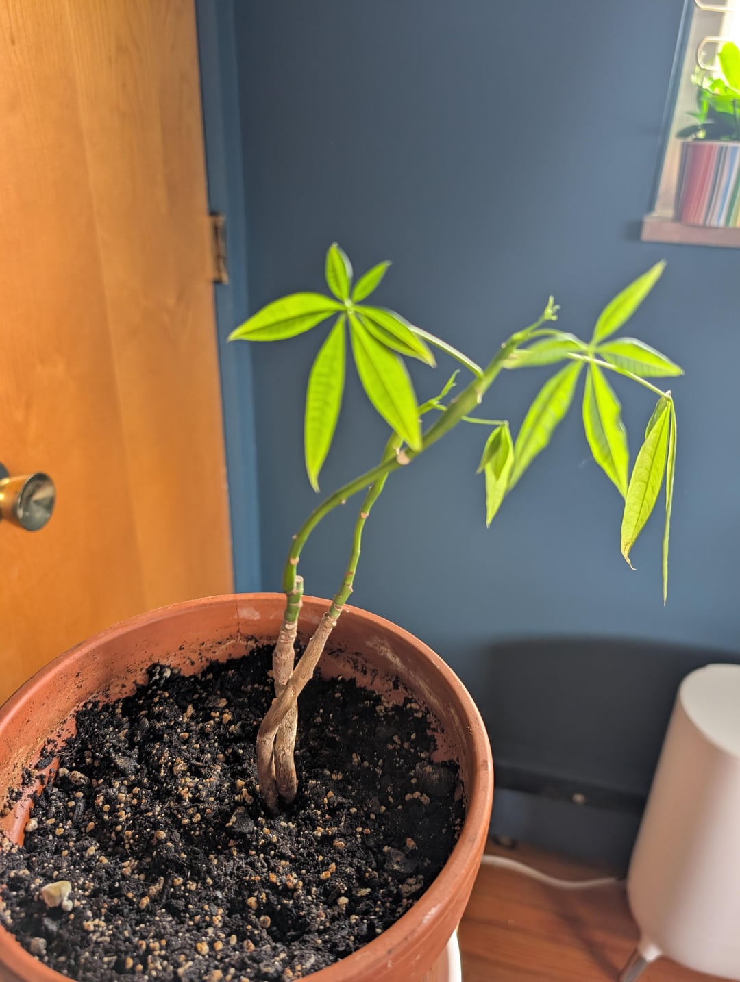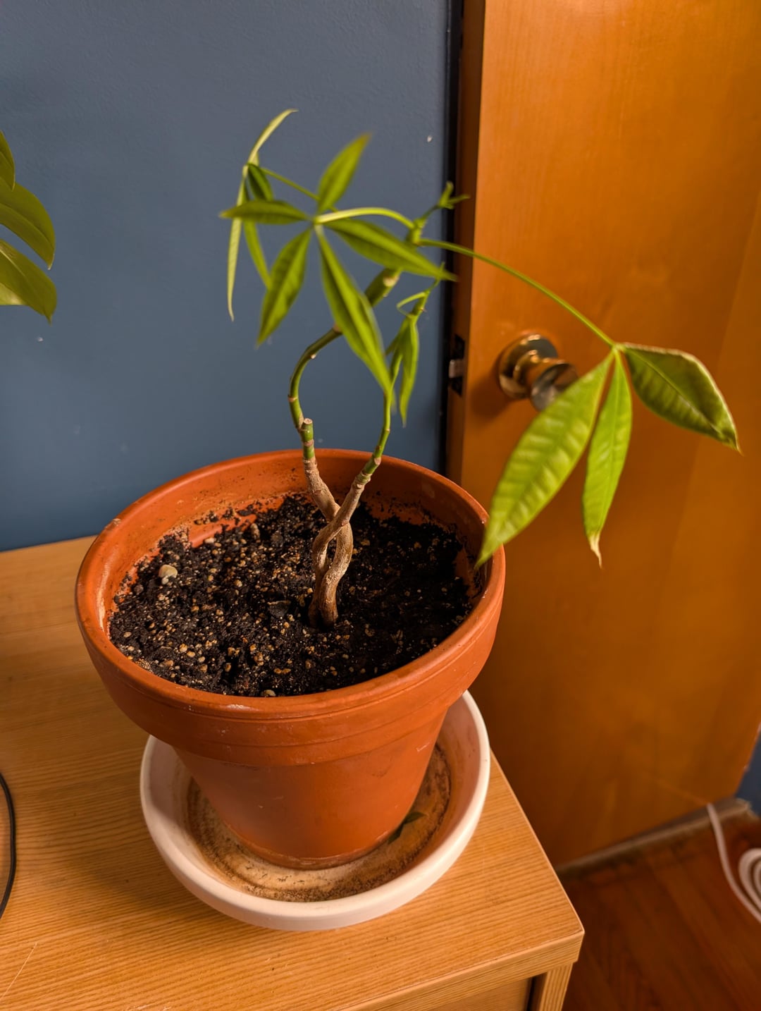 こんにちは、私はギフトとして金のなる木をもらいました。 "自動水やり" 最近万能鉢植えミックスをテラコッタ鉢に植え替えた鉢(写真)。 4本の幹が編み込まれていましたが、残念ながら2本は腐っていて(湿った培地を考えれば驚くことではありません)、根はかなり長かったので、鉢の高さは高くなっています。大丈夫だと思っていたのですが、その後複数の葉を落としてしまい(そのうちの1枚は水やりすぎ?でも今はちょっとしなびています)、残りの2本の幹を失うのではないかと心配しています。