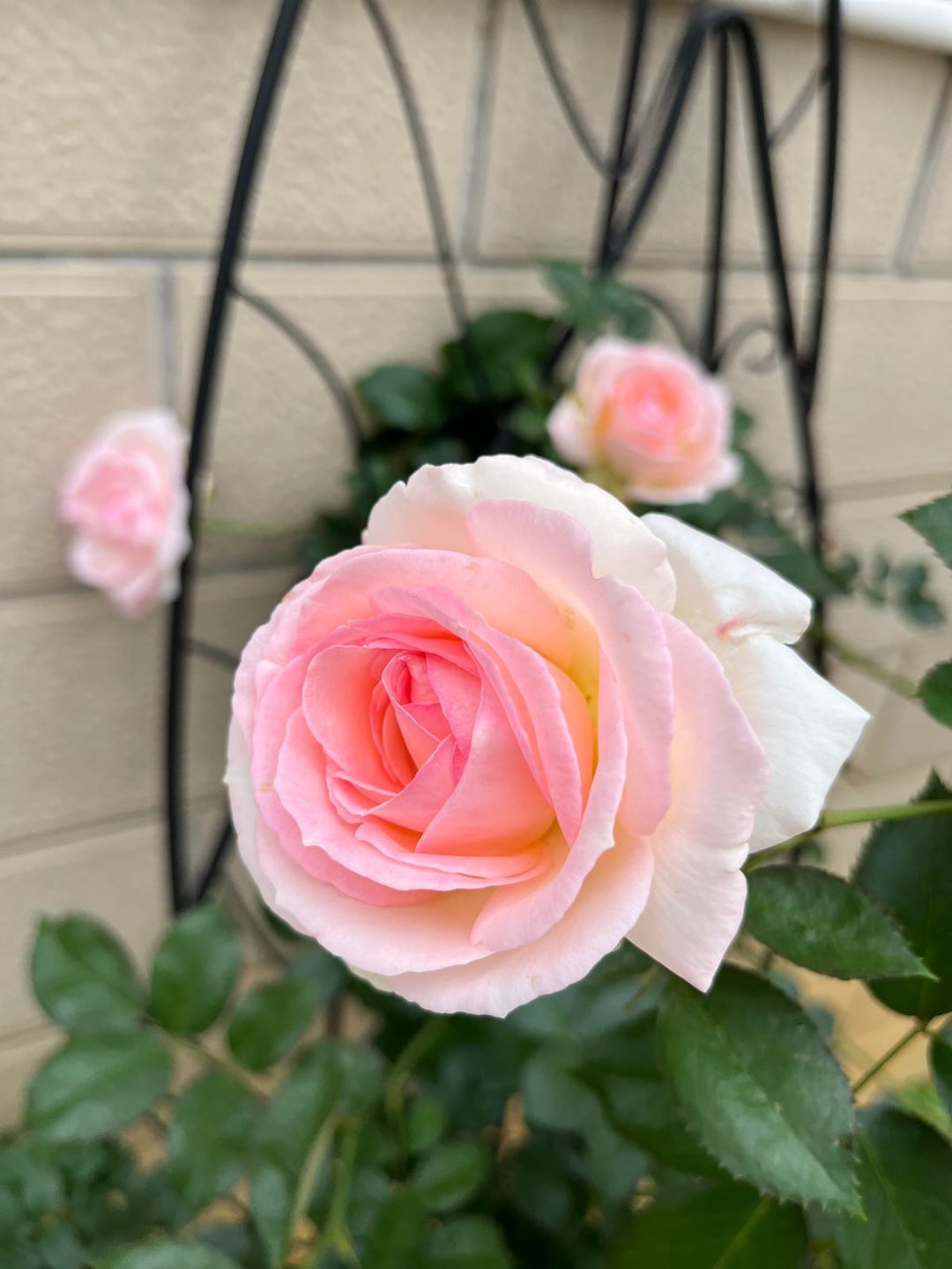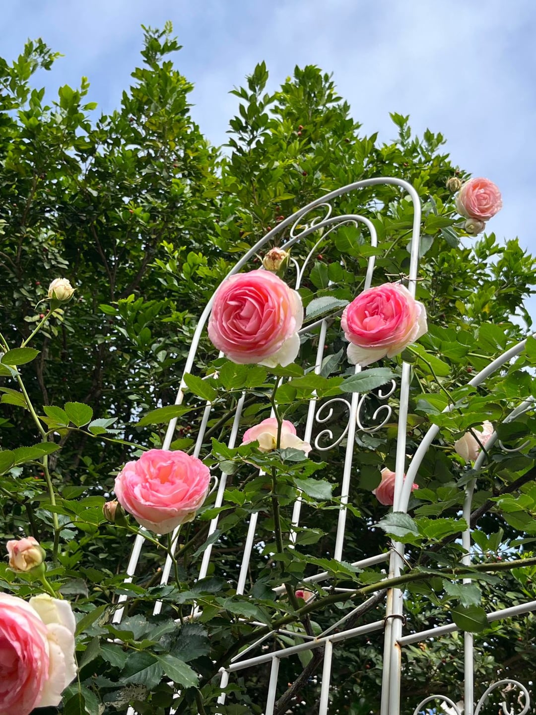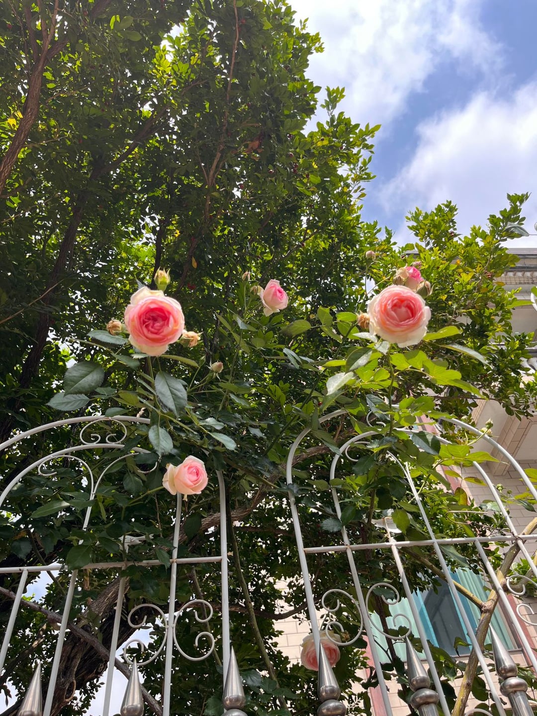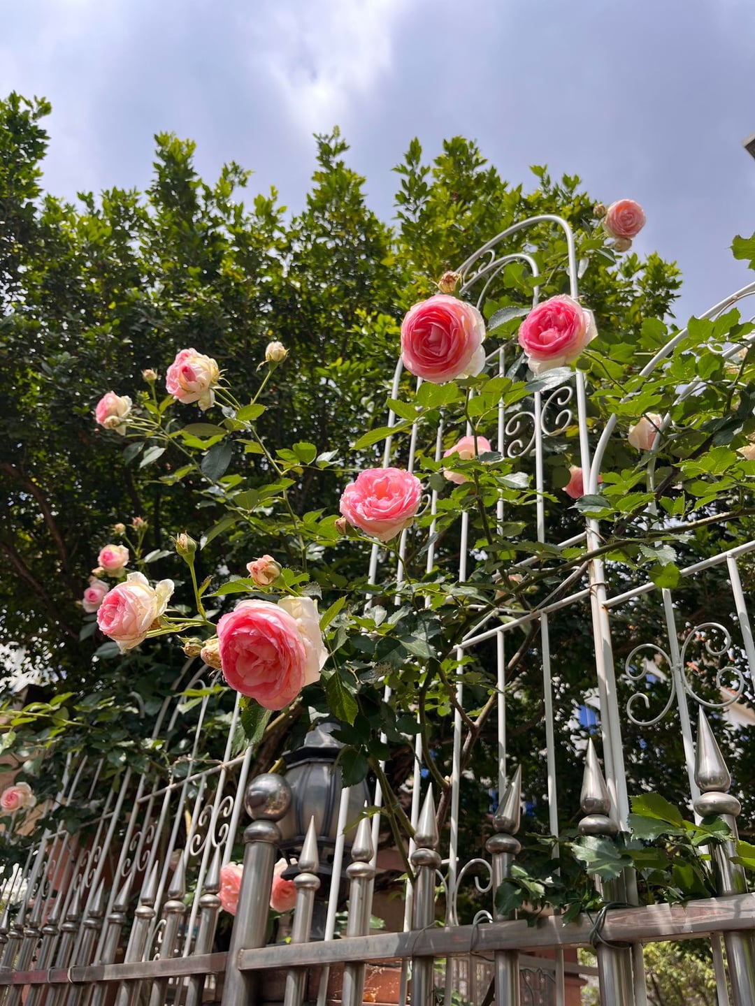 自宅で満開のつるバラ。