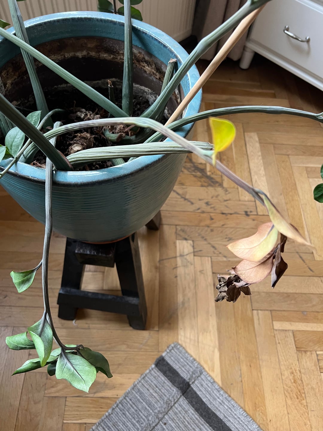 健康を保つために苦労してきました。時々新しい芽が生えてきますが、かなり早く枯れてしまいます。さらにややこしいのは、水やりに対する反応です。定期的に(月に 2 ~ 3 回程度)水やりをすると、既存の茎の一部が枯れ始めます。そのため、水やりをできるだけ控えるようにしていたので、被害は遅くなったようですが、あまり成長しません。