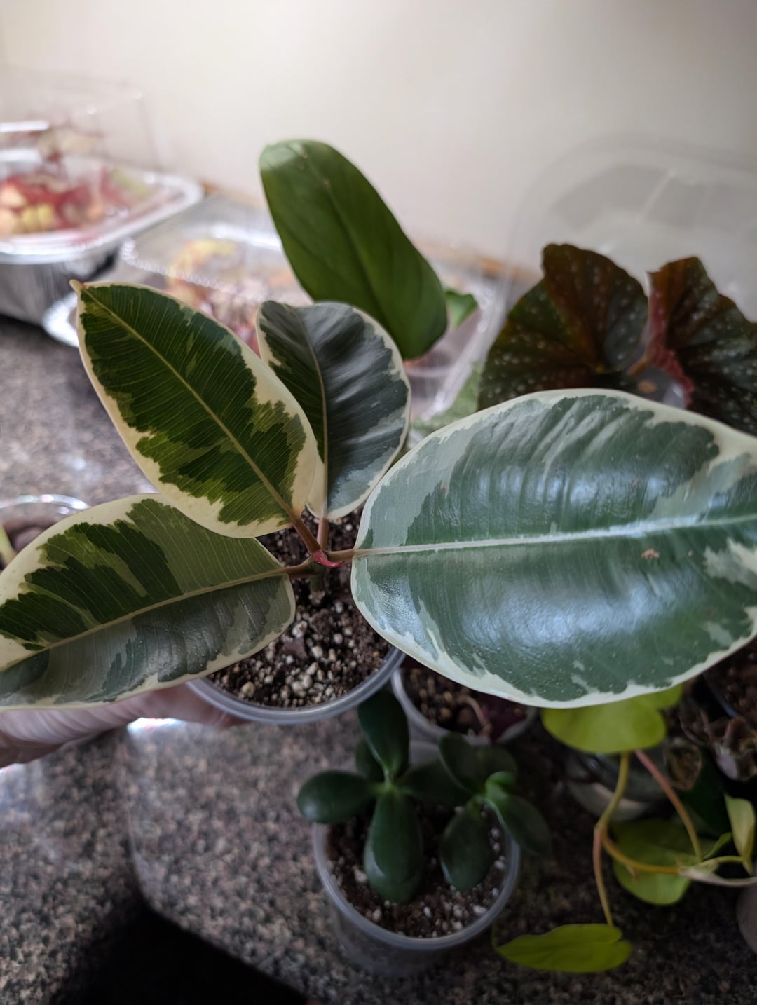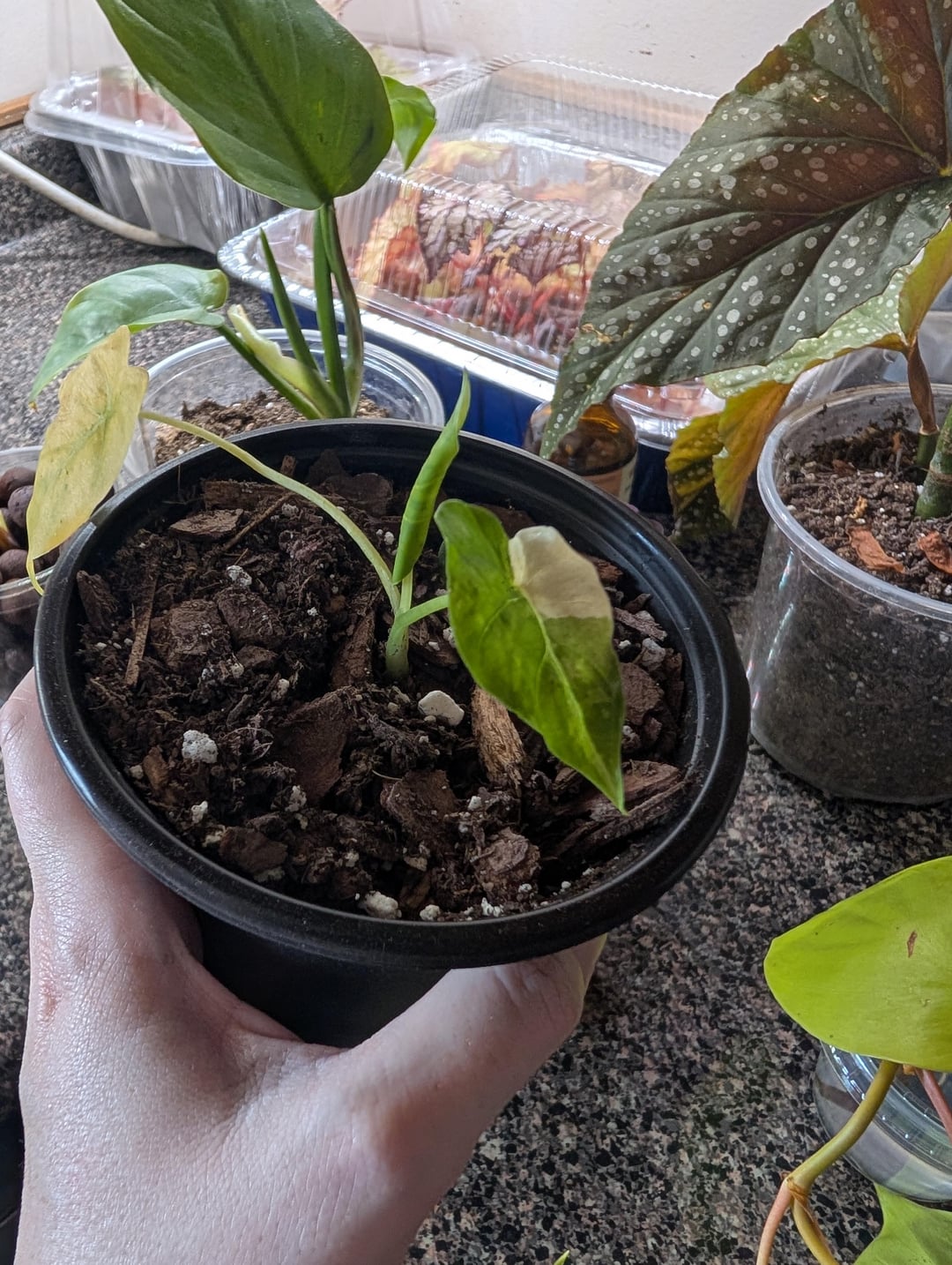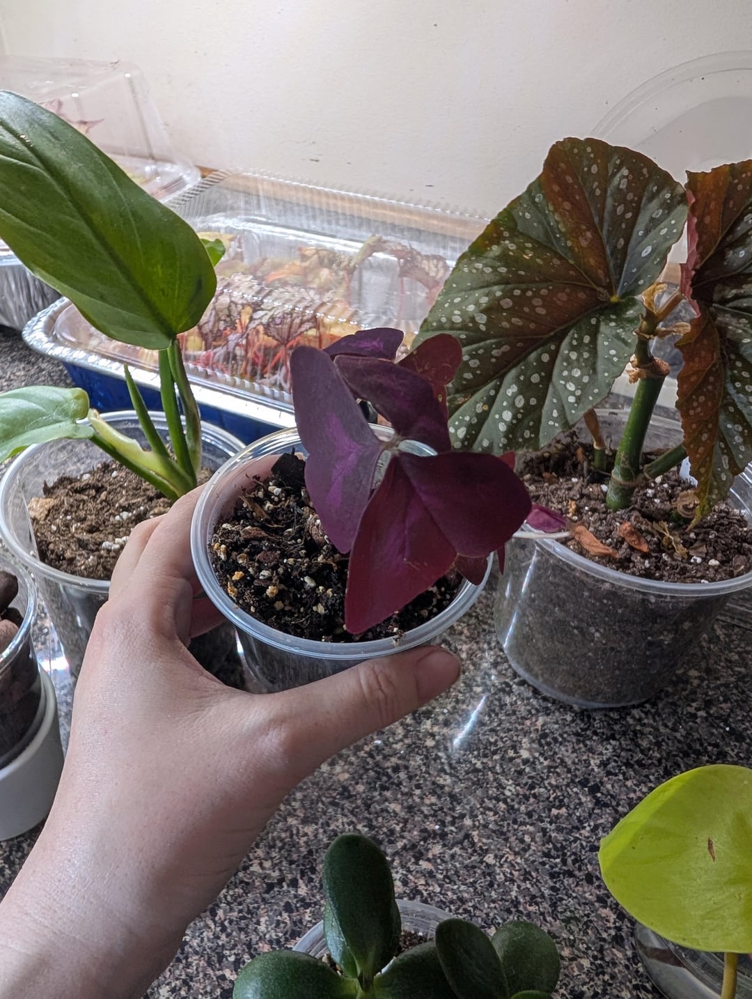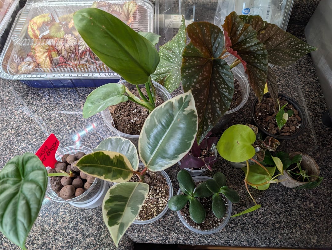 シルバードラゴンスケールクワズイモ、斑入りクワズイモ(正確なIDはわかりません)、ゴムの木、銀の剣フィロデンドロン、ハートリーフ(?)フィロデンドロン、ネノ(?)フィロデンドロンのカッティング、ヒスイ、アングルウィングベゴニア、クレイジーな見た目のペペロミアのカタバミ、そして最後に紫のカタバミです!写真にはありませんが、私もゲットした、すでに芽が出始めたリーガルシールドクワズイモ球茎です!!私はいくつかの異なるベゴニア(合計約9本、4種類)、ポリークワズイモ、2匹のモンスター、N’joy、2匹のピンクプリンセス、白いウィザードカッティングと白いプリンセスカッティングを撮りました。家に帰ってきたのは、枕 2 つ、ベゴニア 4 つ、モンステラ 1 つ、そして白いプリンセスの挿し木 (新しい挿し木を水の中に入れてテーブルの下に隠したことが主な原因です) だけでした。植物を 1 つ小さな女の子に無料でプレゼントしました (彼女はピンクが好きだったので、イベントの最後に最後のピンクのプリンセスをプレゼントしました)。次の交換品を見つけるのがとても楽しみです!!!!