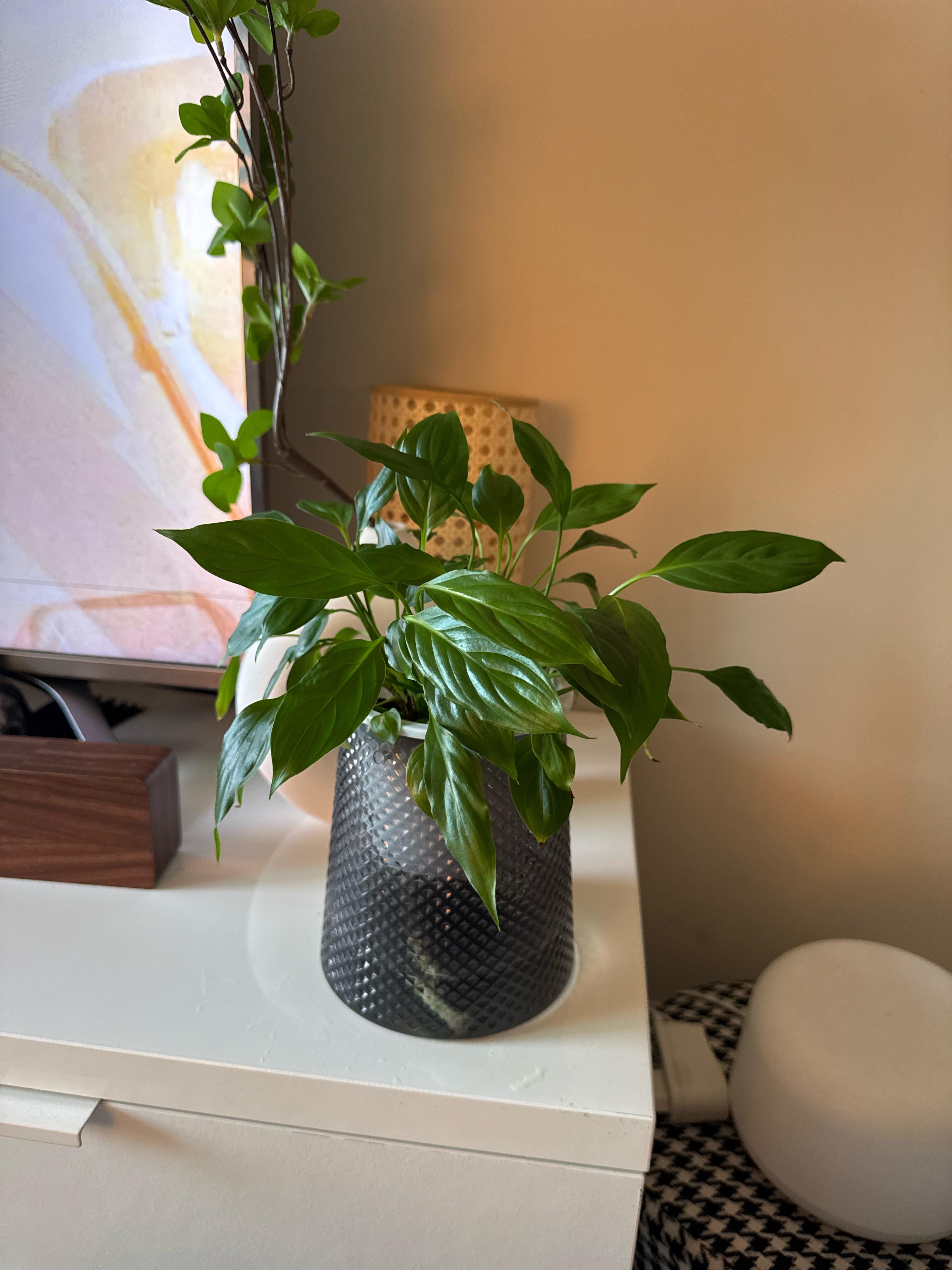 それで、この植物は友人から持ち帰ったとき、ひどく無視され、枯れた葉をすべて切り取って植え替え、ほぼ1年前から世話をしています。植え替えたときは葉が小さかったのですが、今はだいぶ元気になってきました。間接光がたっぷり当たる場所で、すくすく育っています。でも、まだ咲いていません。 開花させる方法について何かアドバイスはありますか?