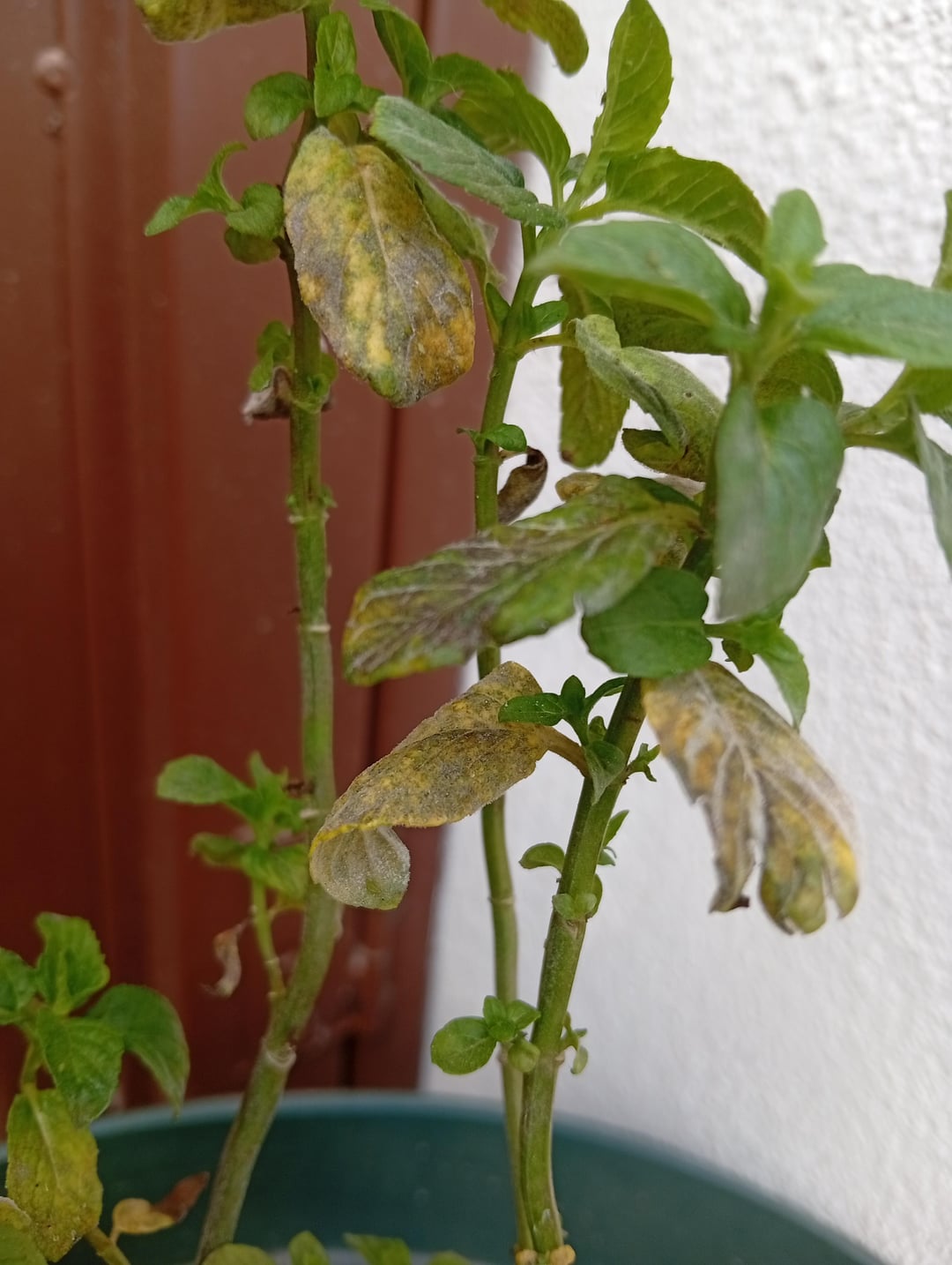 やあみんな!最近植物に興味を持ち、ミントの葉が常に枯れているようです。植物全体の多くの場所で新しい葉が成長していますが、小さな葉と大きな葉の一部が突然色が変わり始め、その後乾燥し始めます。もともと屋内に置いていたのですが、同じことが起こっていました。直射日光が1日に数時間しか当たらない隅に屋外に持ち出しましたが、同じようです。土壌をチェックしたときの湿度に応じて、毎日または別の日に水を与えます。