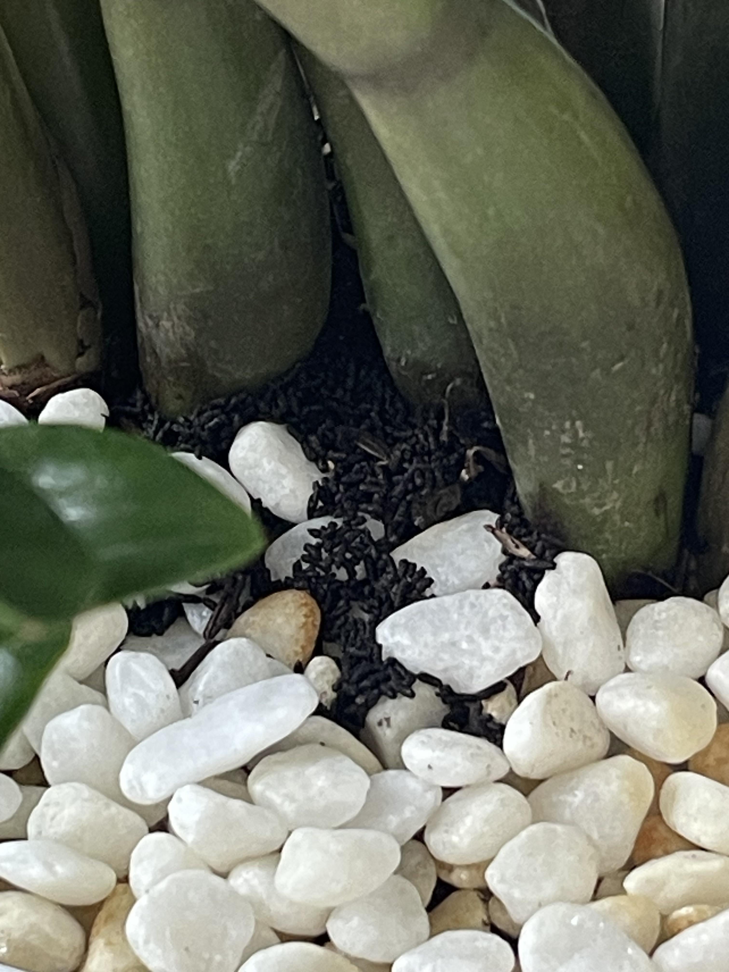 ZZプラントの下に現れた小さな黒い塊は何ですか?土ではないと思うのですが、何か分かりません、不気味です🥲