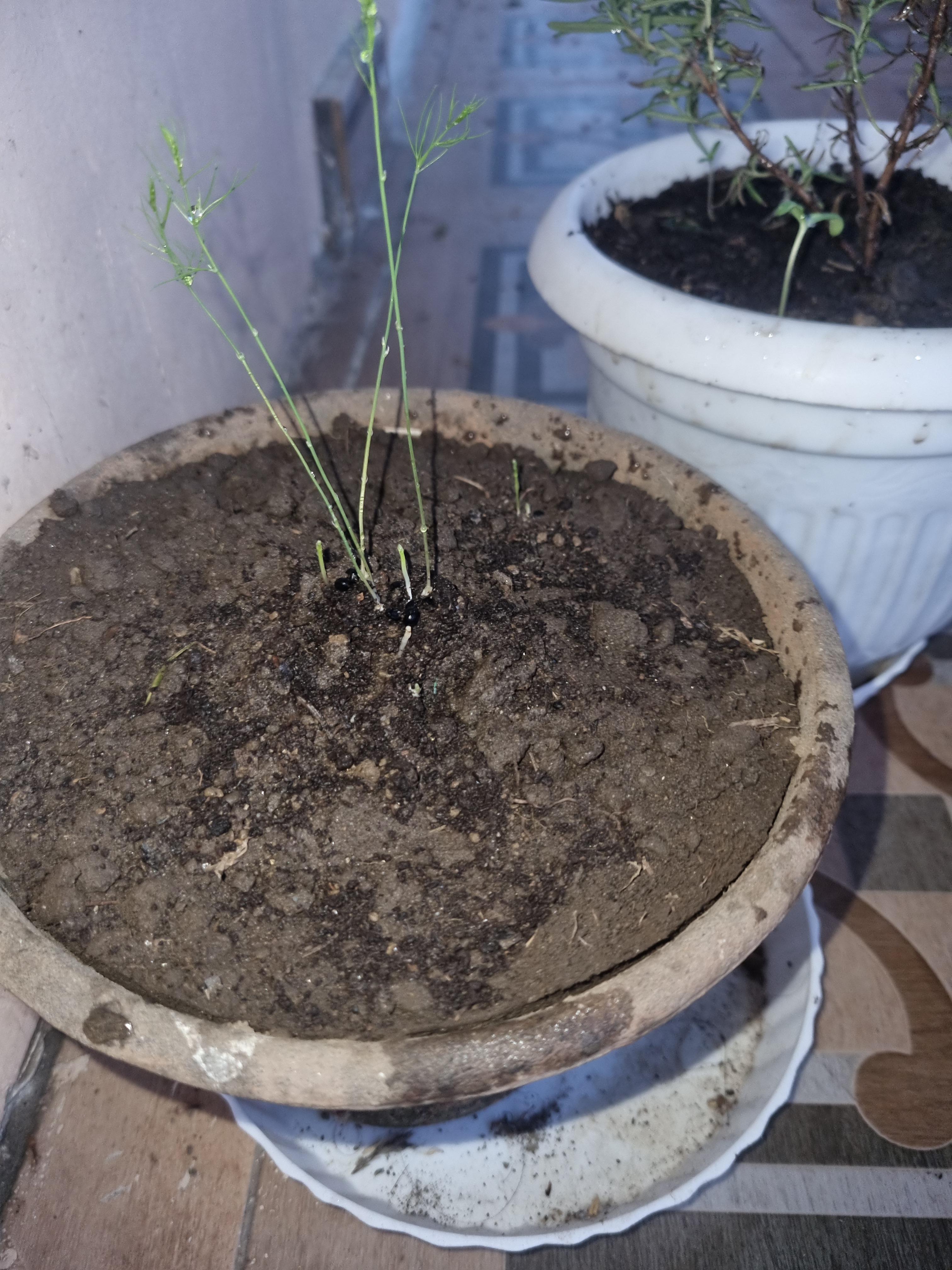 昨日、アスパラガスを別の鉢に植えました。現在、ベビーアスパラガスが8本あります。