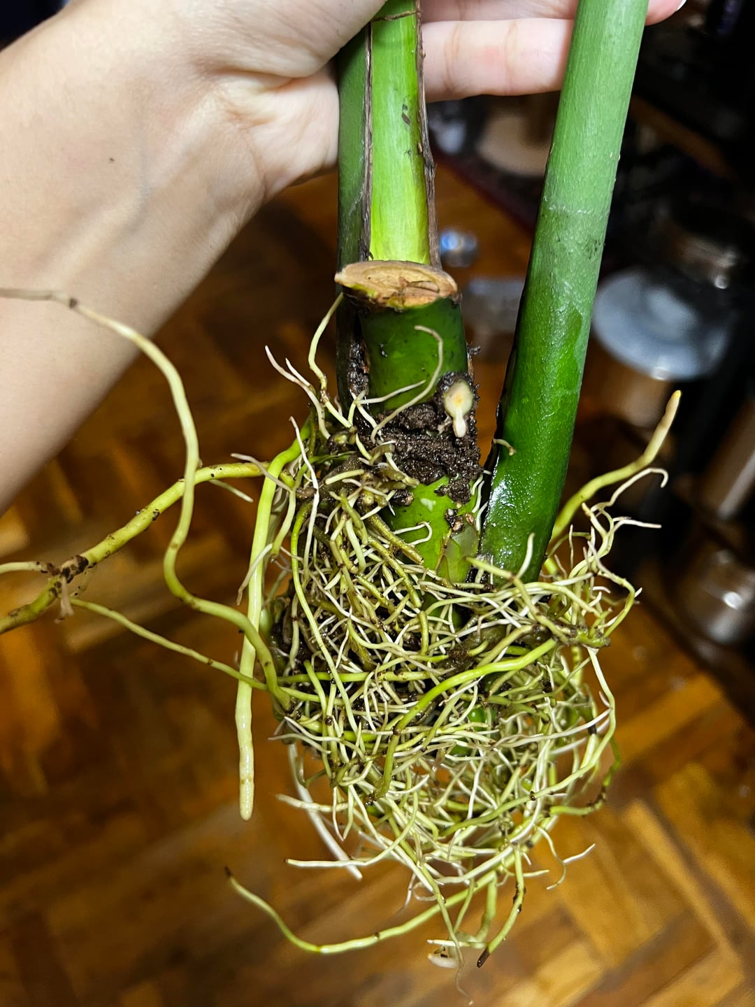 モンステラの茎と根に茶色のほとんど土のような物質があり、言葉を失いました。これは私が数ヶ月前から飼っている水繁殖です。正直に言うと、水が減って根の一部が空気にさらされたことが何度かありましたが、それが関係しているかどうかはわかりません。これは何かの菌なのでしょうか?これが何である可能性があるかについての情報は見つかりません。助けてください