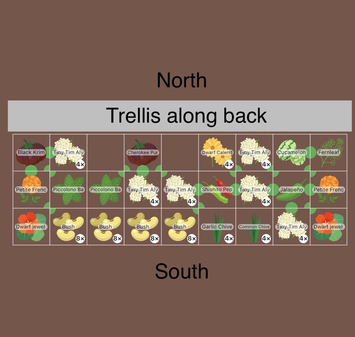 私の庭のレイアウトについてのフィードバックをお待ちしています。主に心配しているのは、トマトに十分なスペースがあるかどうか、仲間の様子、そして直播きするつもりなのでピーマンがキュカメロンの影になってしまうのではないかということです。私はワシントン州西部のゾーン 9a にいます。