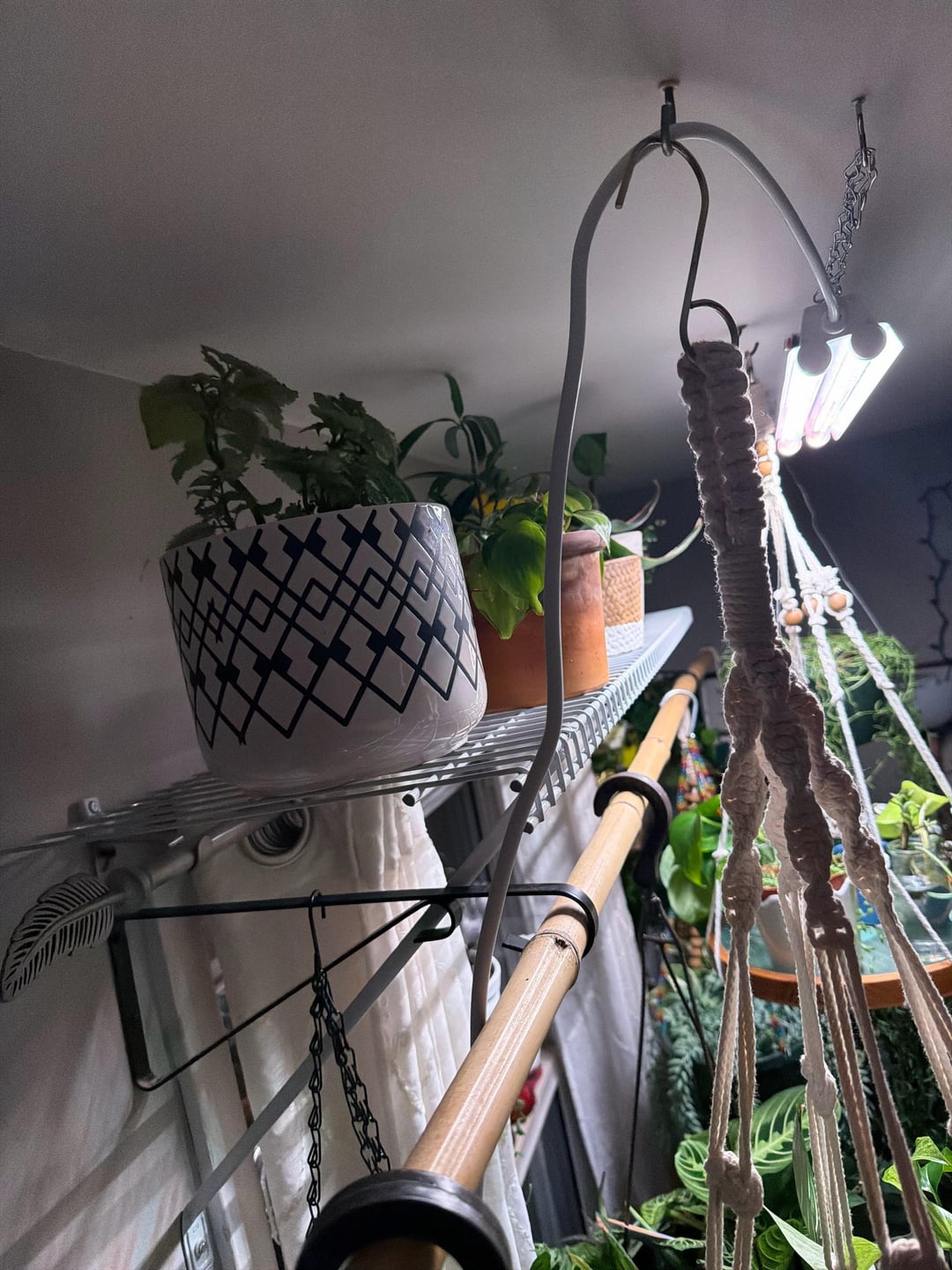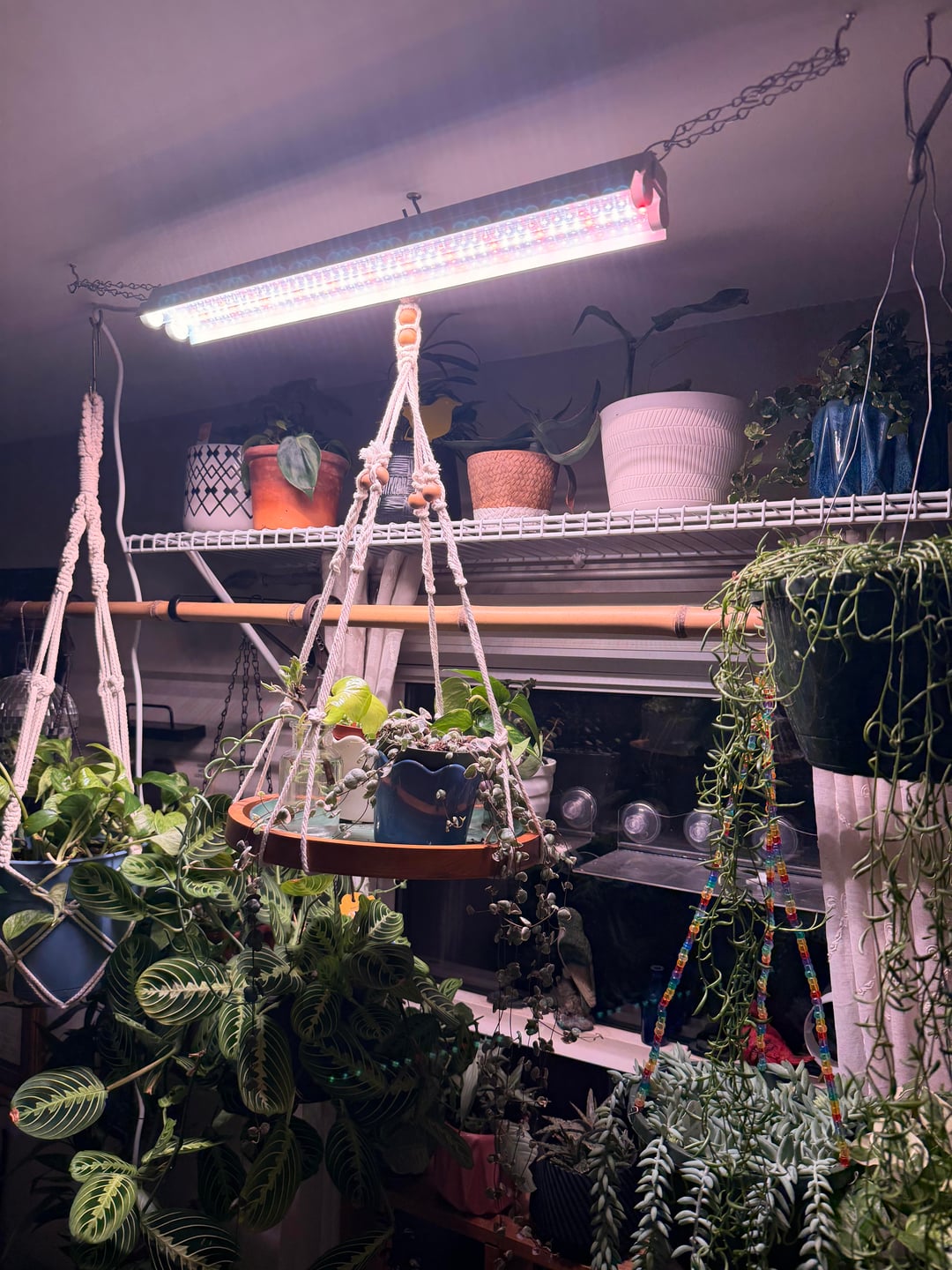 今日、植物を置くスペースを増やすために、植物室の窓の上にこの棚を設置するように夫に頼みました。光が完全に当たっていないように見えることに今気づきました。グローライトがどこまで機能するかはわかりません。照明を改善しなければ、彼らがそこで苦しむのではないかと心配していますが、それは考えすぎかもしれません。 (より良い角度については2枚目の写真を参照してください)