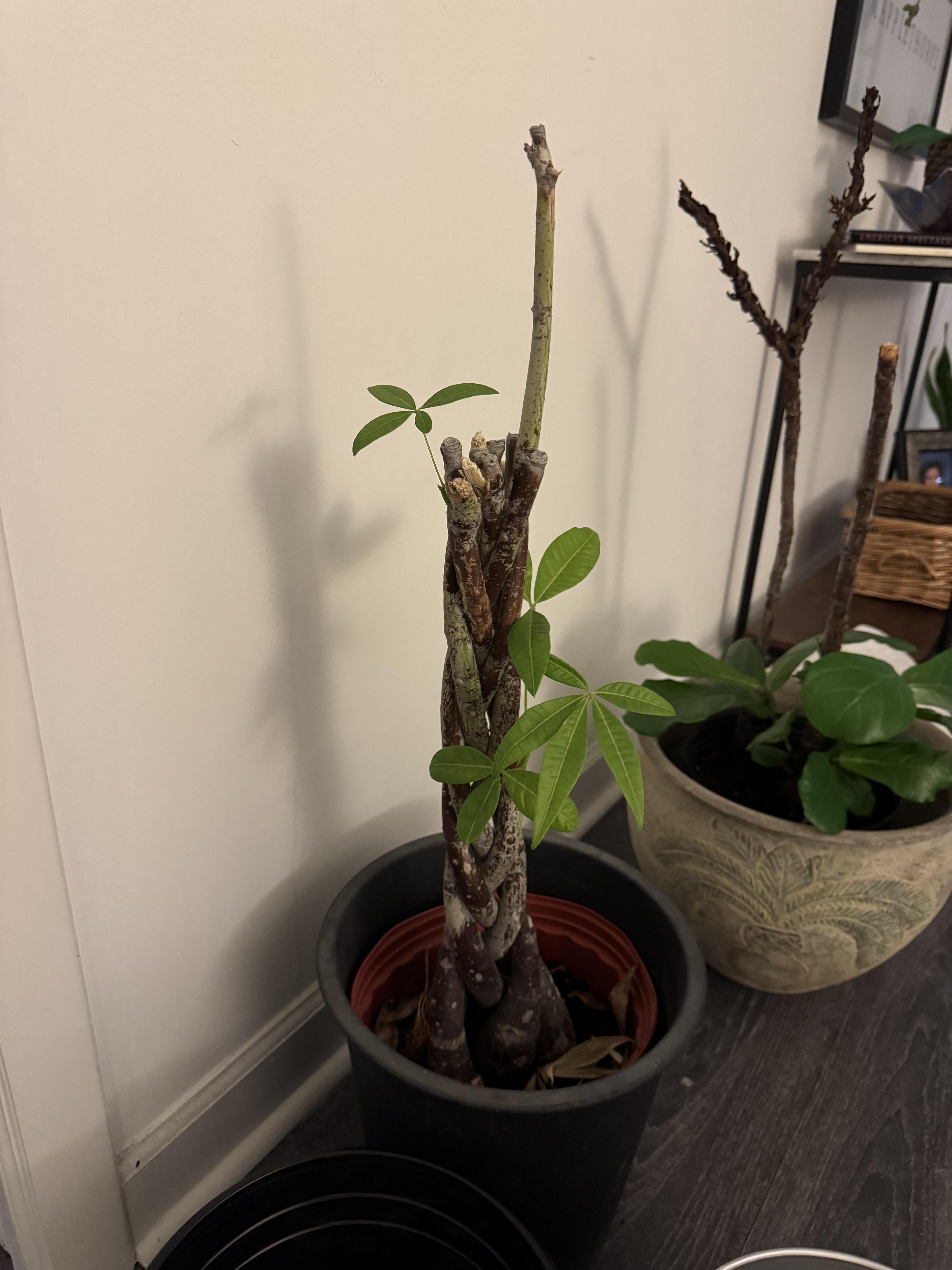 私の母の金のなる木はより良い日々を過ごしました。彼女は友人の家の外からそれを保存しましたが、どのように世話をするか、少し切り詰める必要があるかどうかわかりません。分厚いトロピカルミックスに植え替える予定ですが、上部を切り落とした方がよいかどうか知りたいですか?
