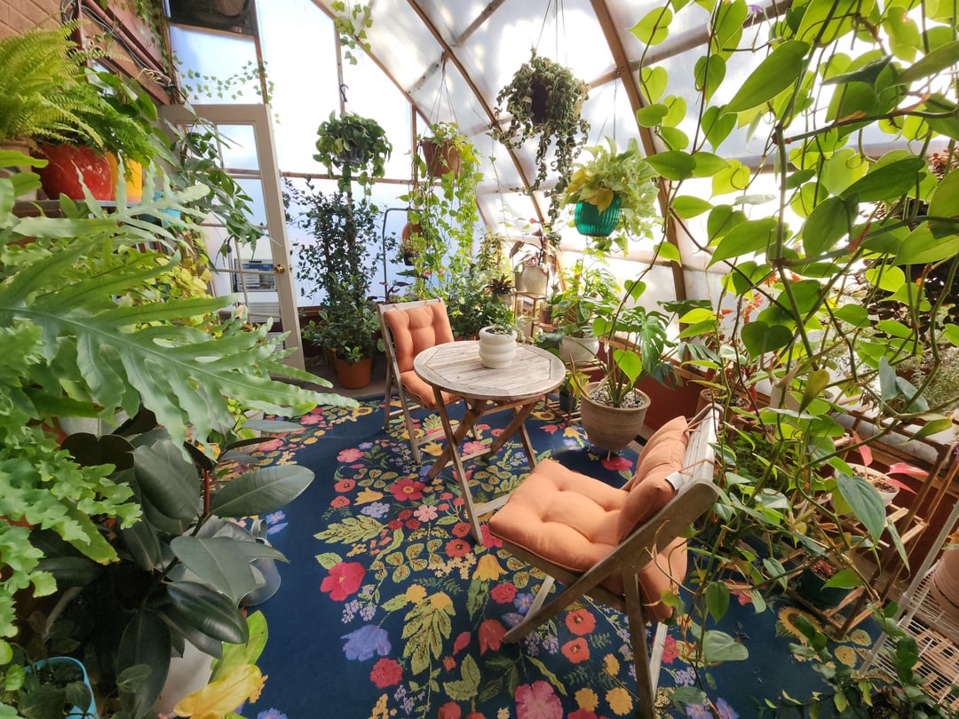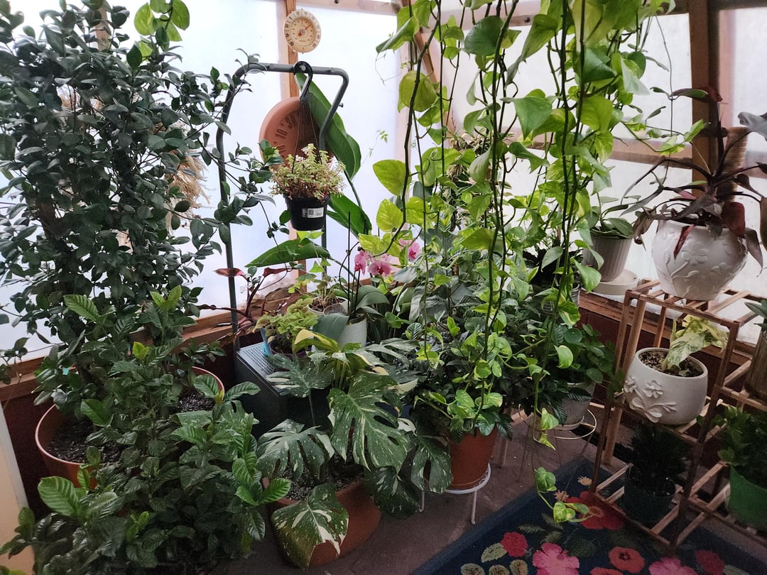 について人々から多くの混乱を受けました "雲" 透けて見えますが、これは二重ガラスのビニール温室です。プラスチックは曇っていて、それは外の木の影です。悲しいことに、ここには魔法のような水に浮かぶ温室はありません。それは家にもたれかかっており、家からも入ることができます。何十年も前に元の所有者によって建てられたもので、私はただの賃貸人です。