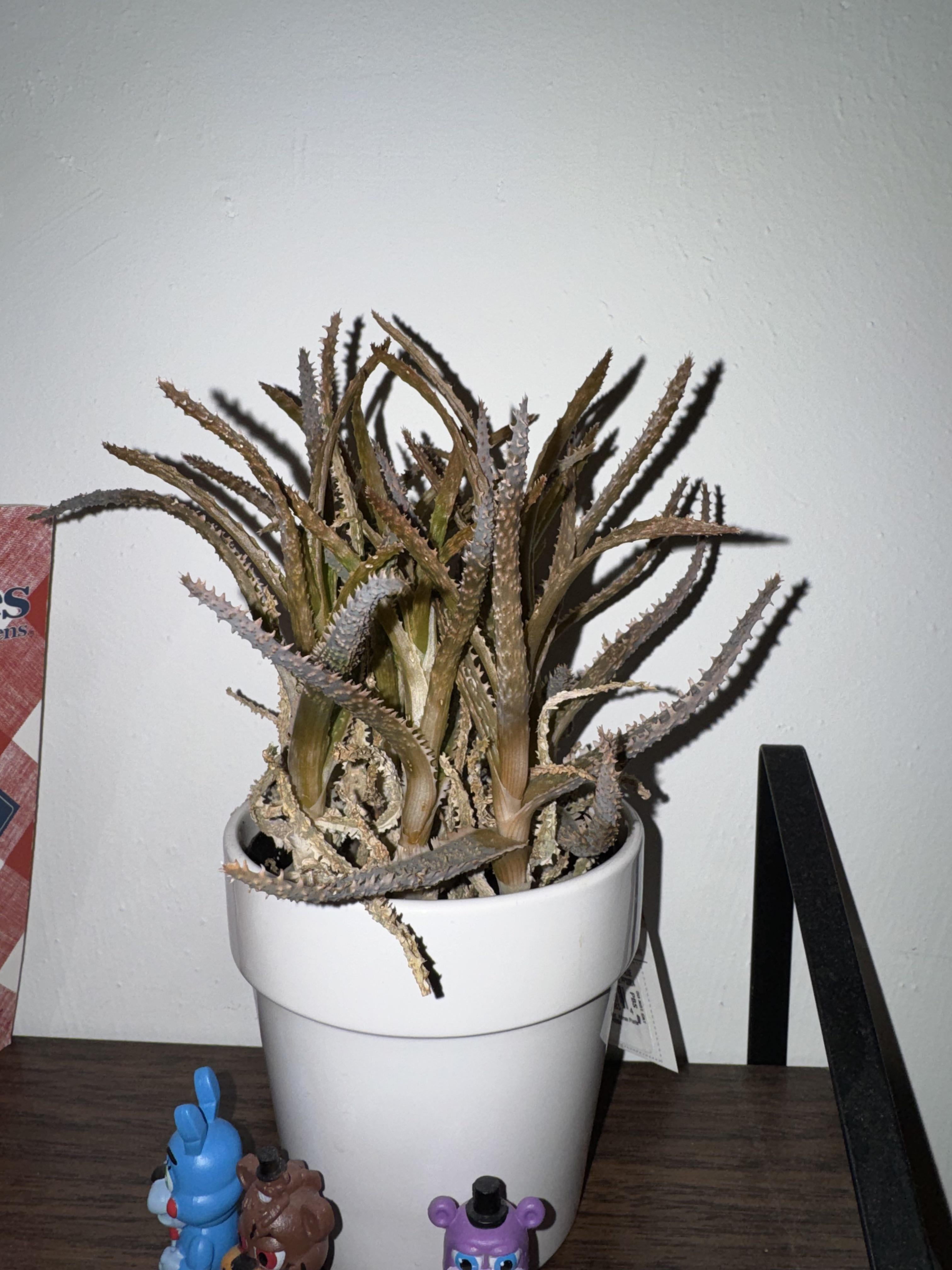 私はこのスターアロエを約1年間育てています。いつも元気だったのですが、突然、葉が薄くなり、茶色くなっていることに気づき始めました(それとも黄色?よくわかりません)。購入して以来、私は一貫して隔週(または3週間ごと)に水スプレーボトルで数回スプレーしてきました。