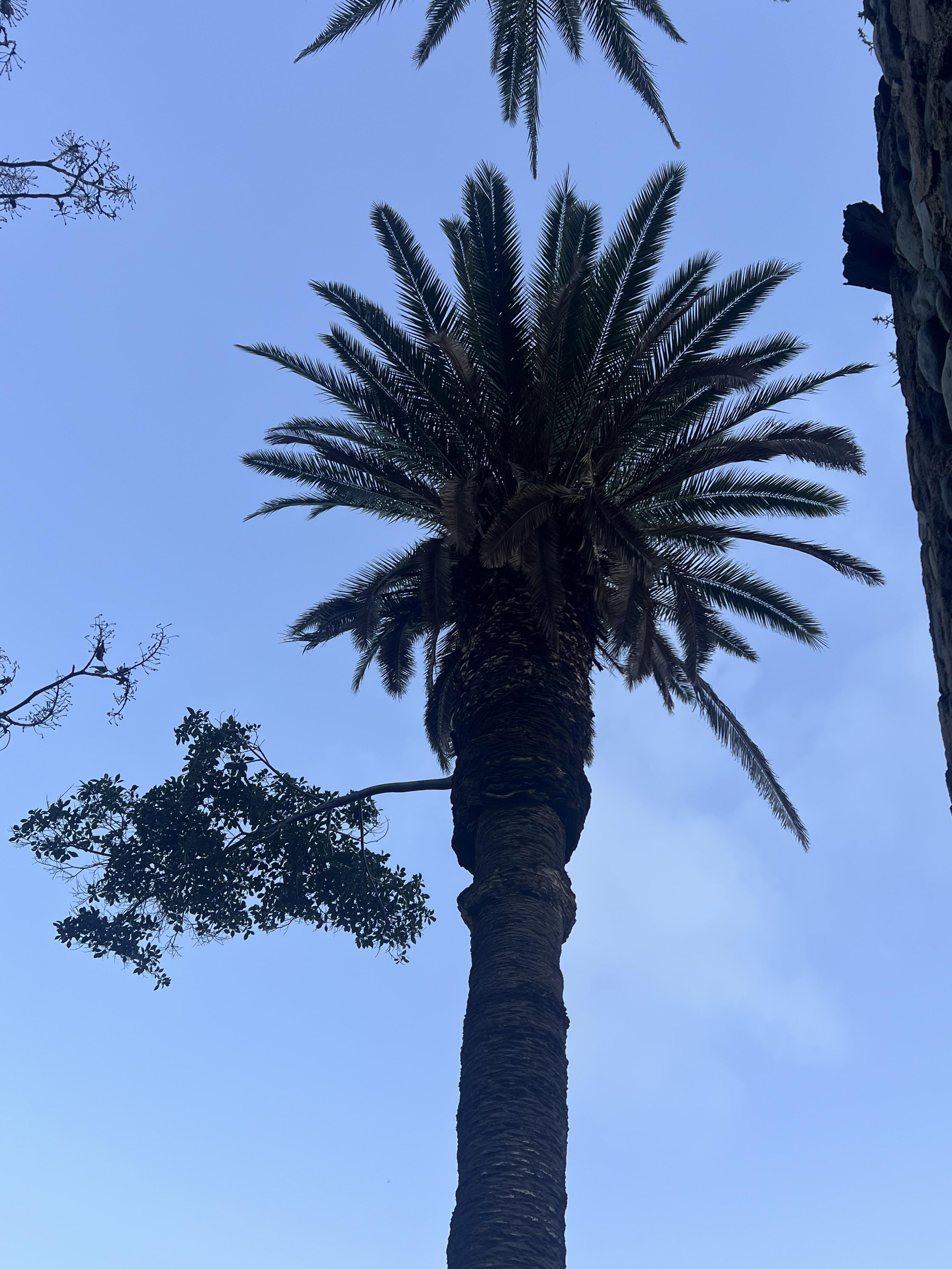 ちょうど帰宅途中にこれを見て、ここで何が起こっているのか興味がありました。ヤシの木はカナリア諸島のナツメヤシで、周りにたくさんあるのですが、そのような枝を持ったヤシの木は見たことがありません。