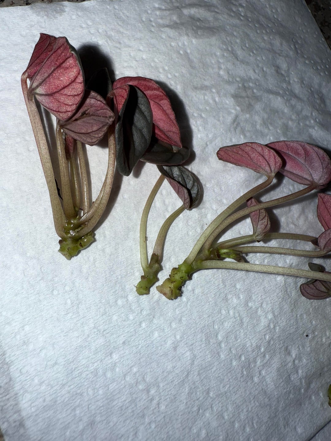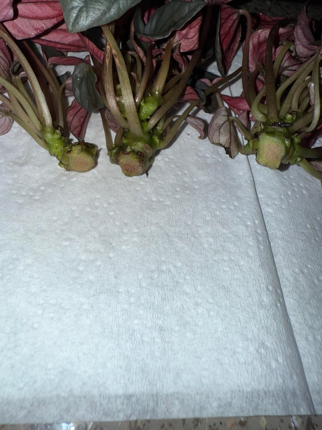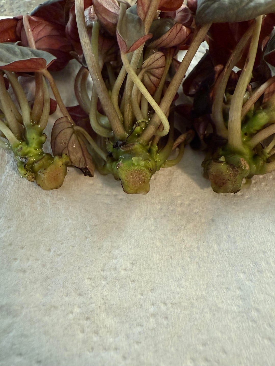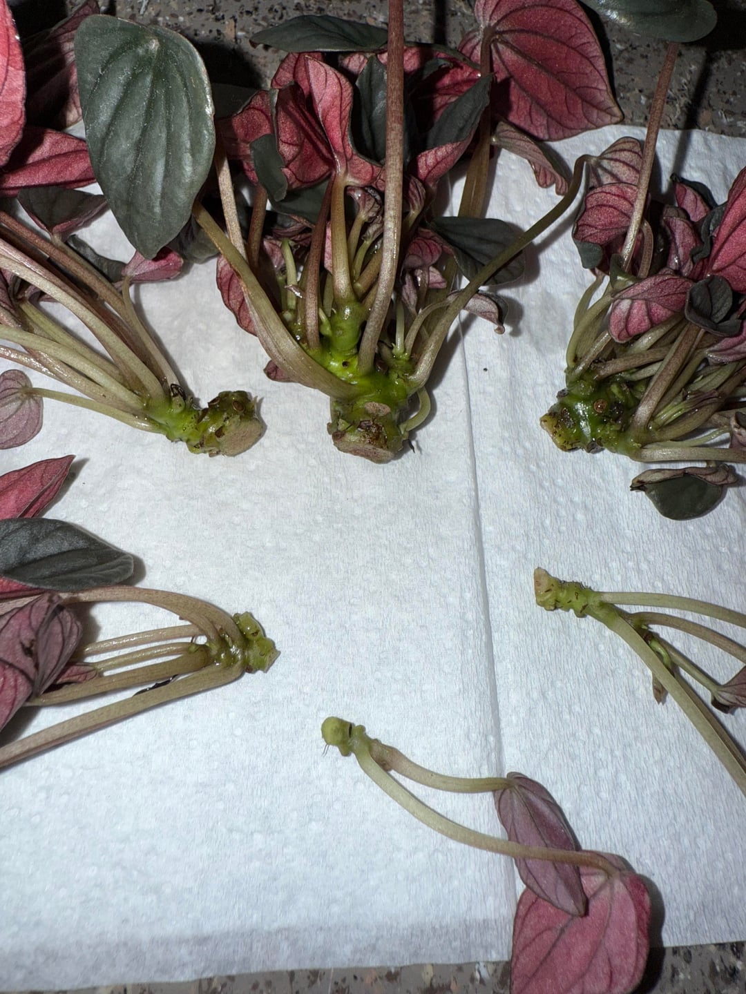 ペペロミアの霜が垂れていて根を確認すると腐っていました。できる限り切り取って、植物のさまざまな部分を取り出しました。 これらの植物を茎を使って保存することは可能でしょうか? それらを広める最善の方法は何でしょうか?水、土、パーライト? 大きな茎をもっと切る必要がありますか?ほんのり茶色に見えますが