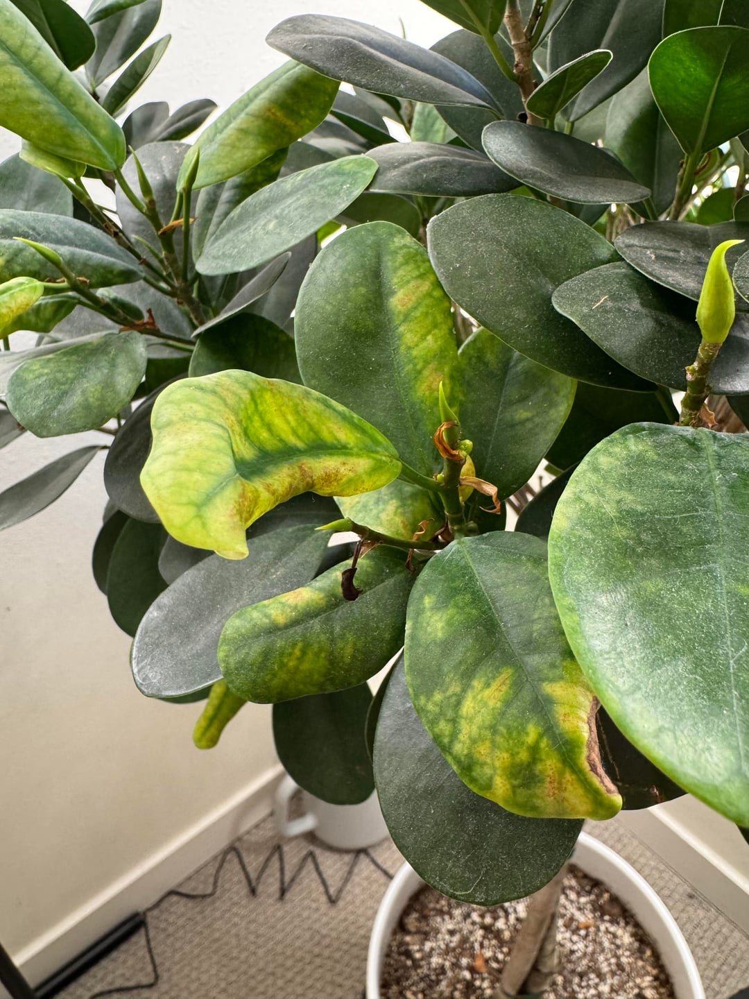 うちのガジュマルの木があまり元気がありません。 4ヶ月しか食べていないんです。新しい芽はみんなこんな感じで寂しそうに見えます。 最初は光が足りないと思ったので、育成ライトを購入しました。それは役に立たなかったようです。 それから、水やり不足かもしれないと読みました。それで、もっと頻繁に水をやり始めましたが、それも役に立たないようです。 私はワシントン州に住んでいますが、室内温度は華氏約 68 度です。 何をすべきか何かアイデアはありますか?