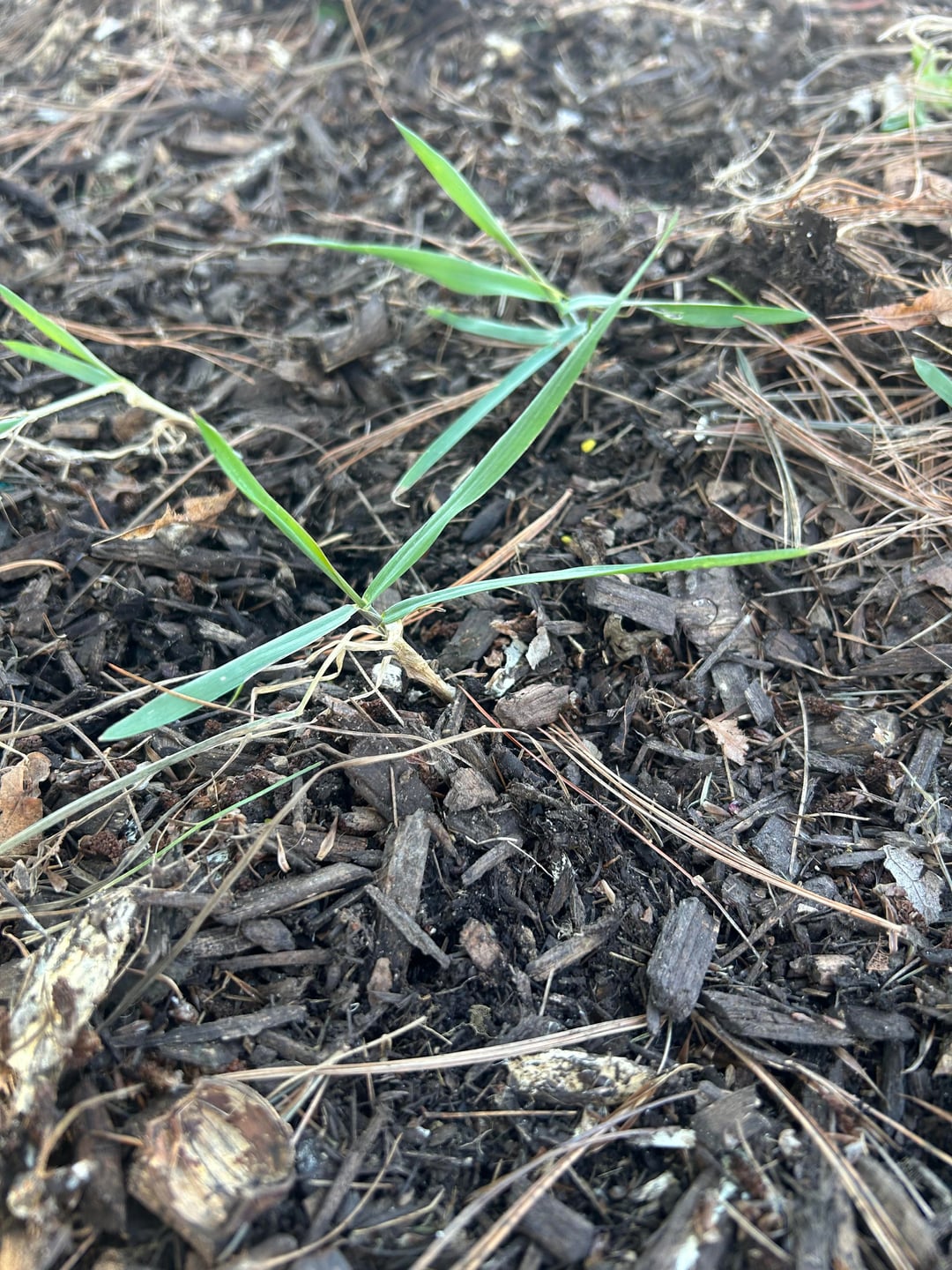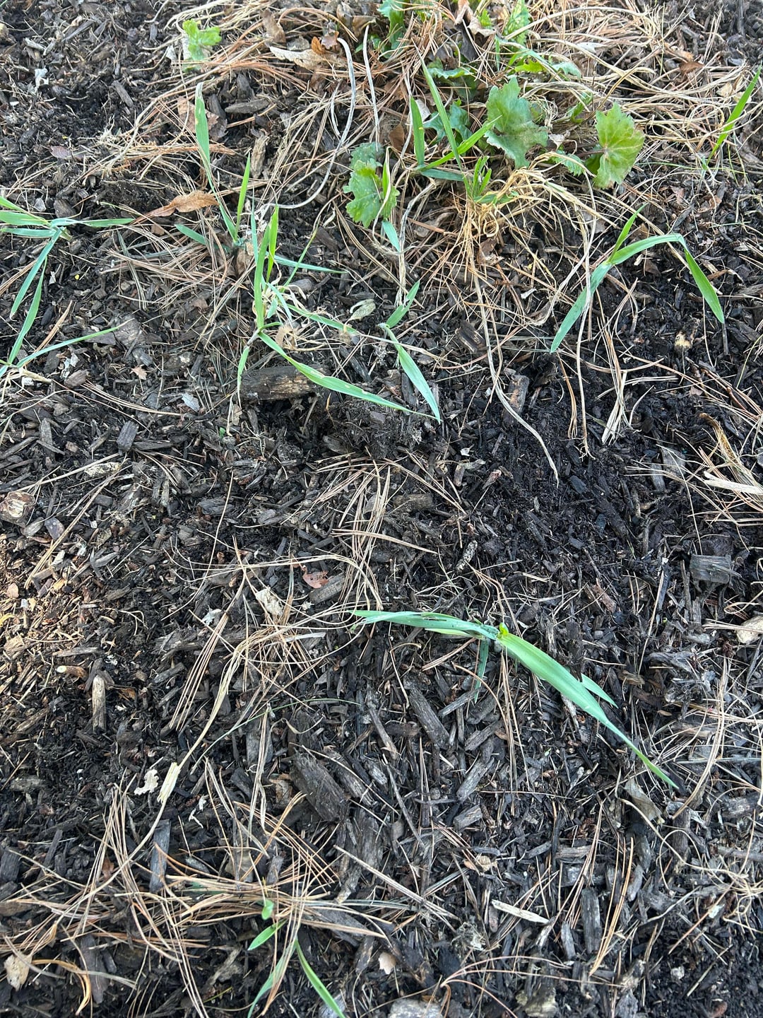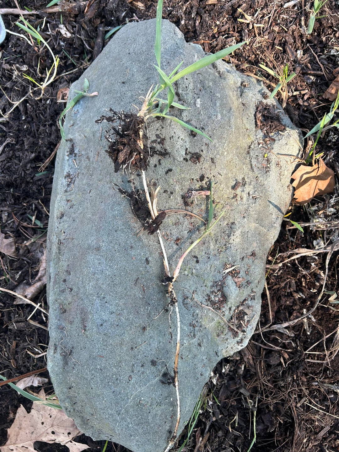 ここオハイオ州では早い段階から暖かい日が続き、多年草がすでに成長し始めています。そこで、昨年の紅葉と枯れた花の茎を取り除き、宿根草のベッドをきれいにしました。すると、花の中に小さな草の塊のようなものが点在しているのを見つけました。しかし、引き上げてみると、芝生のような根はなく、1~2フィートの長さのランナーがついていました。写真を参照してください。この植物/雑草は何ですか?一年中引っ張り上げてるのかな?