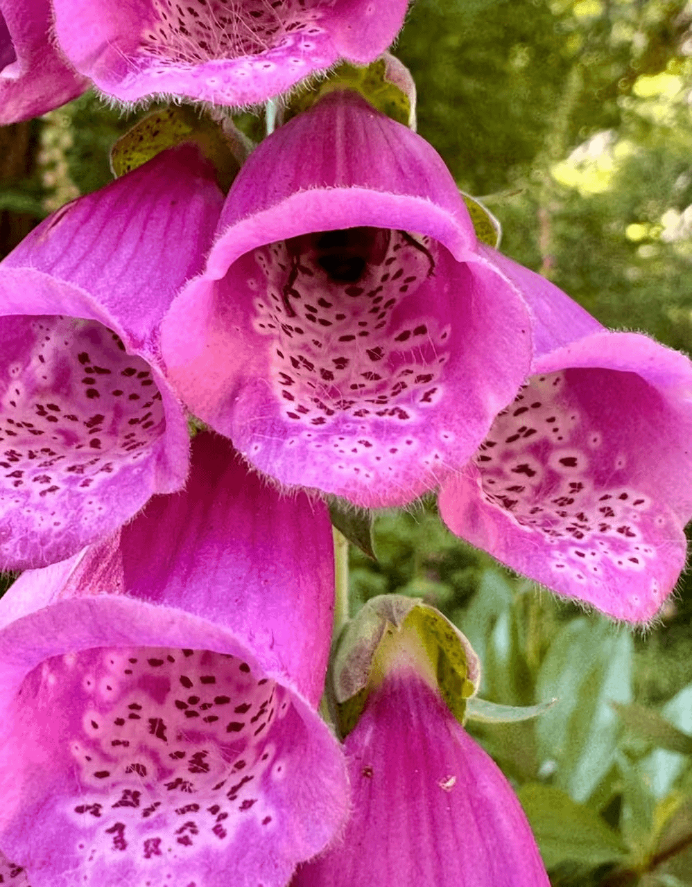 • 花は垂れ下がった鐘形で、色は紫から白までさまざまで、内側に独特の暗い斑点があります。