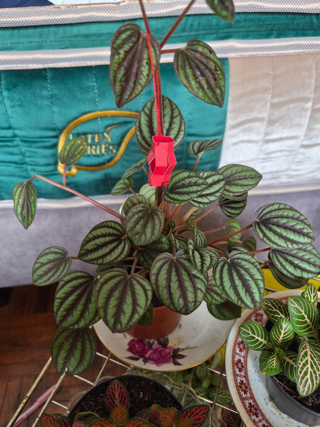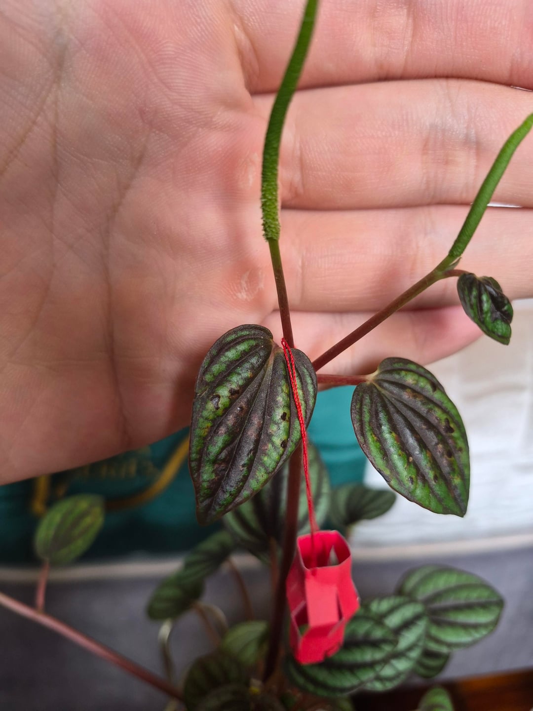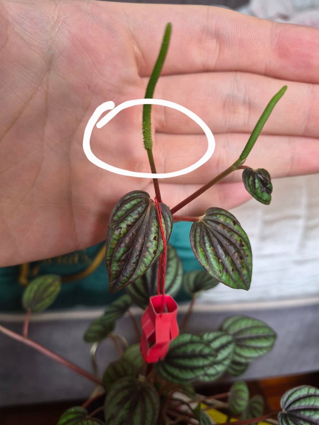 この白いものは、この長い血管から出てくるものなのでしょうか。そして、その茎は赤いはずですか、それとも私が何か間違ったことをしているのでしょうか。また、このペペロミアが何の種類なのかわからないので、教えてください。