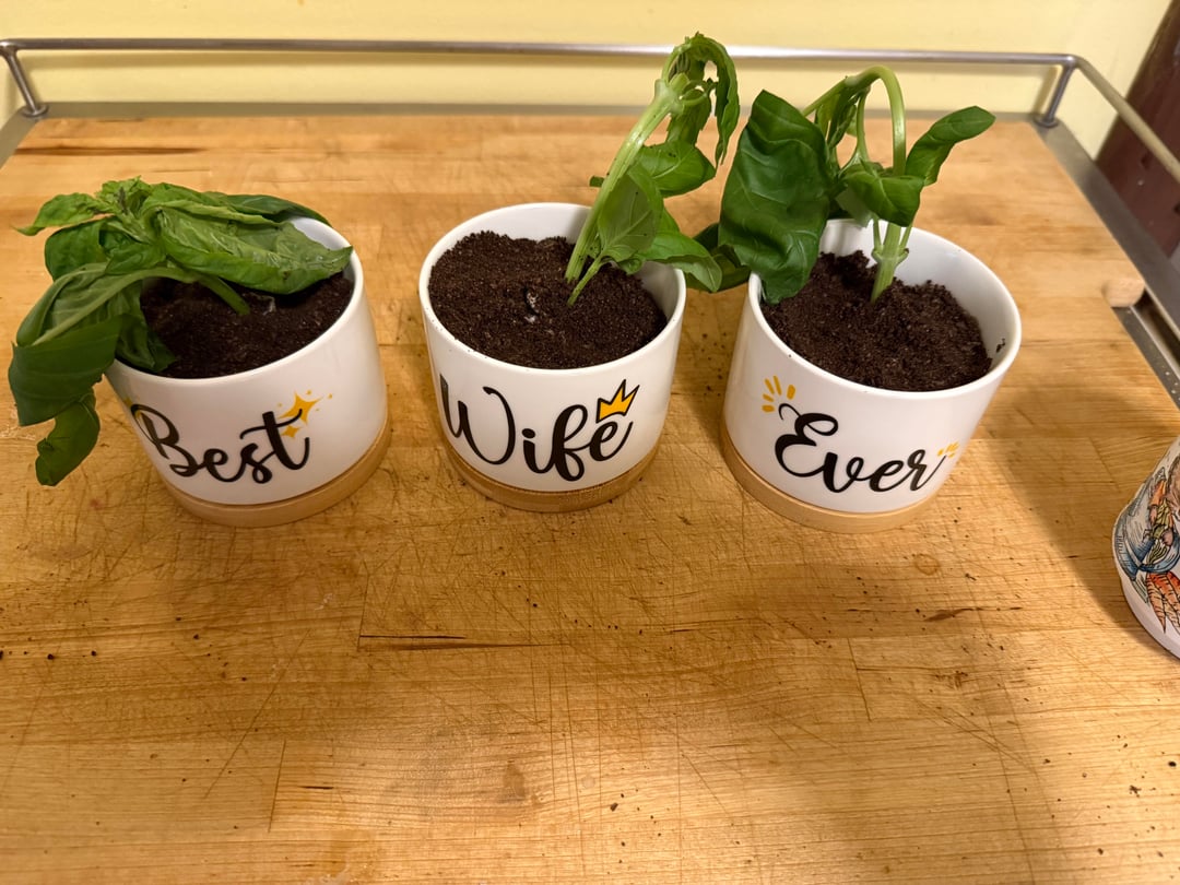 さて、今年はガーデニングをテーマにやってみます。それで、オレオクッキーを「鉢植えミックス」に粉砕し、一度も使用したことのない清潔な鉢にバジルの苗を植えました。そして明日は朝食時にとてもお腹が空いたふりをして、バジルを食べて土を食べるつもりです。