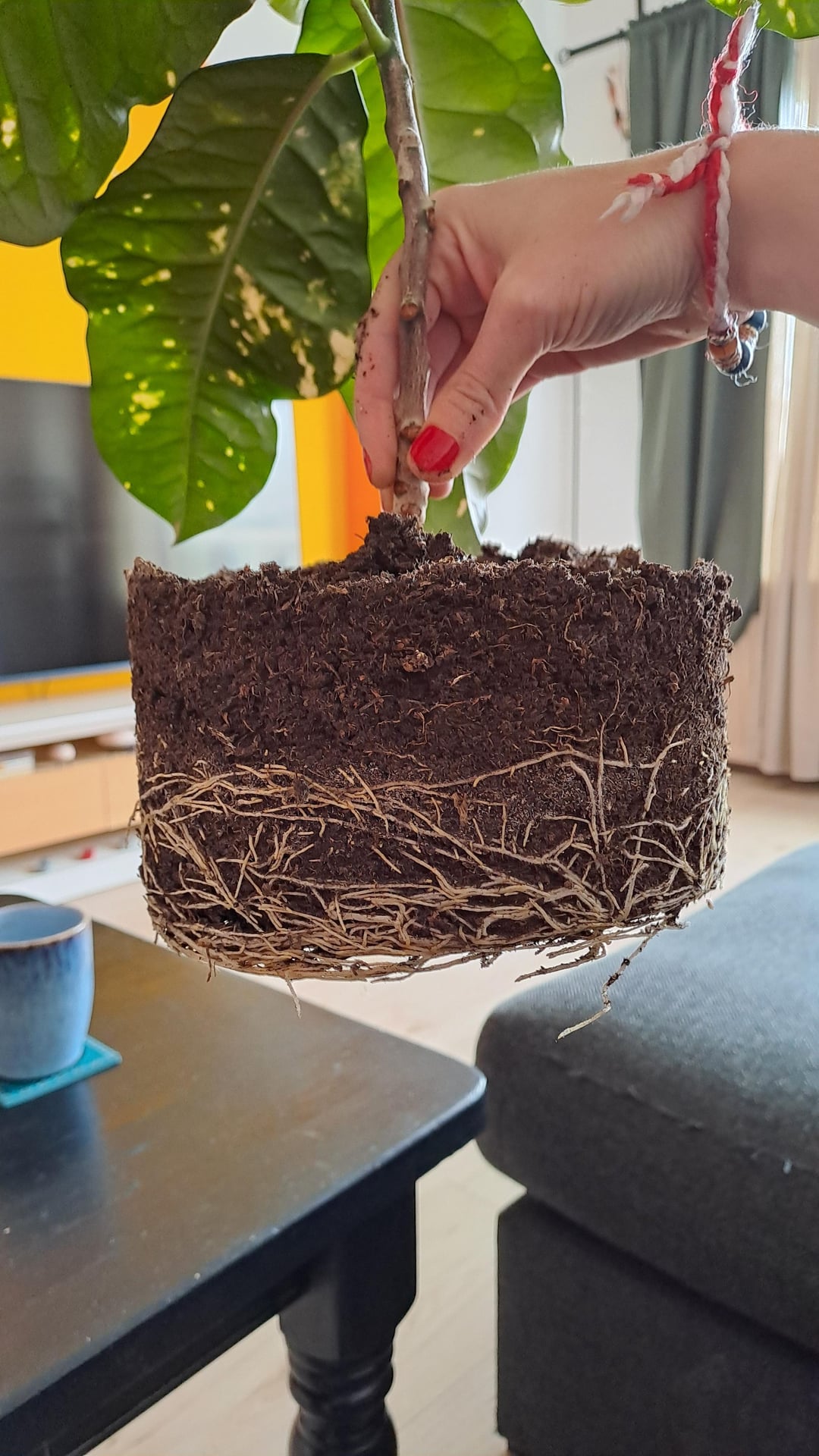 ポジティブなエネルギーを私たちに送ってください。私たちは二人とも非常にストレスの多い一日を過ごしました。植え替える準備をした鉢がこの根の状況には小さすぎることに気づき、植物屋に駆け込みました。ありがたいことに、女性はとても親切で、苗床の鉢を無料でくれました(とても巨大だったので、新しい装飾用の鉢を買わなければなりませんでした)。