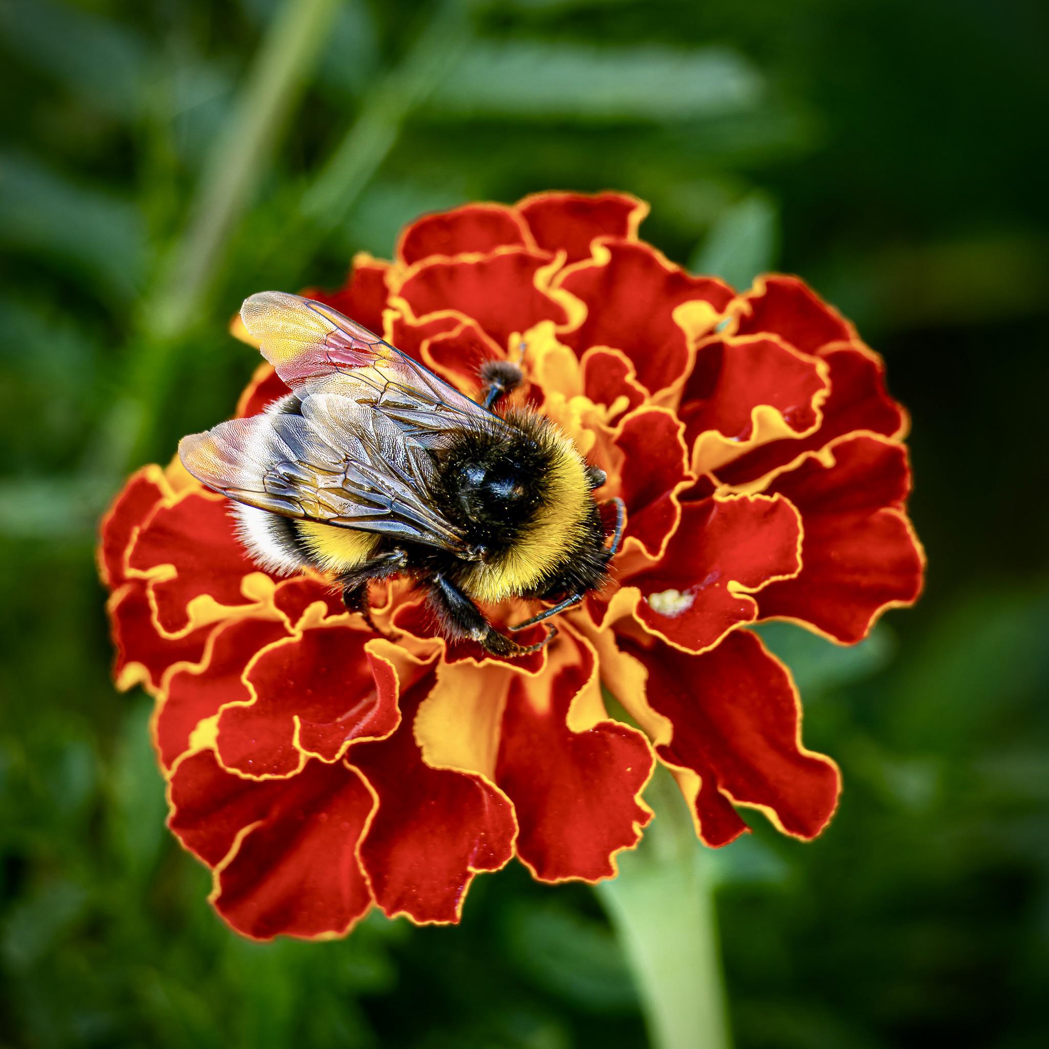 花から花へと移動するマルハナバチの深い羽音。夏を告げるあの音は、まさに設計通りに機能しています。庭のすべてのマリーゴールドを訪問するボンバス 🐝