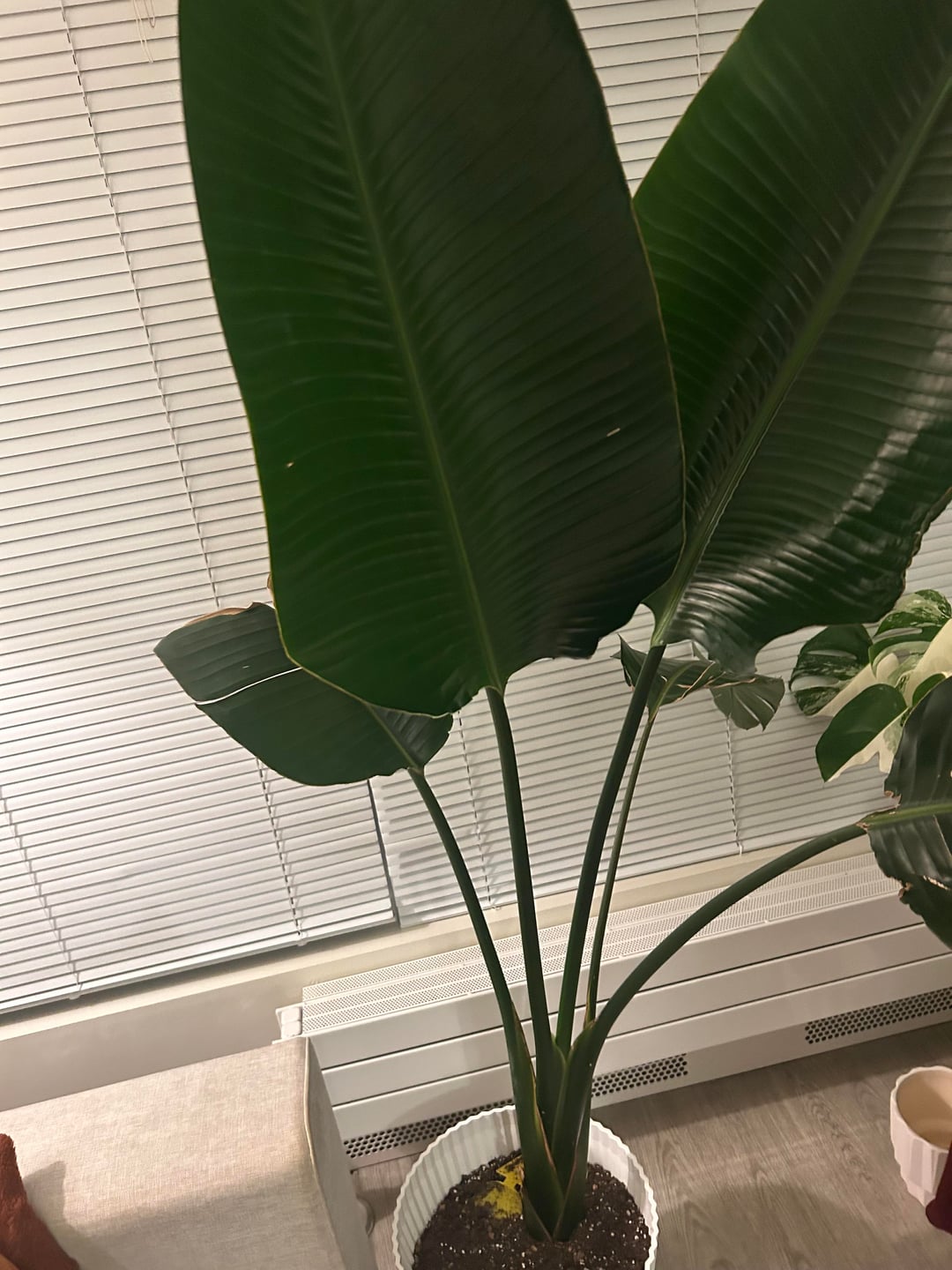 一年前に素敵な極楽鳥を拾いました。鉢に植え替えると、すぐに大きな2枚の葉が成長しましたが、完全には展開せず、数か月間活動がありませんでした。午前中は直射日光が当たり、水やりは十分に行います。