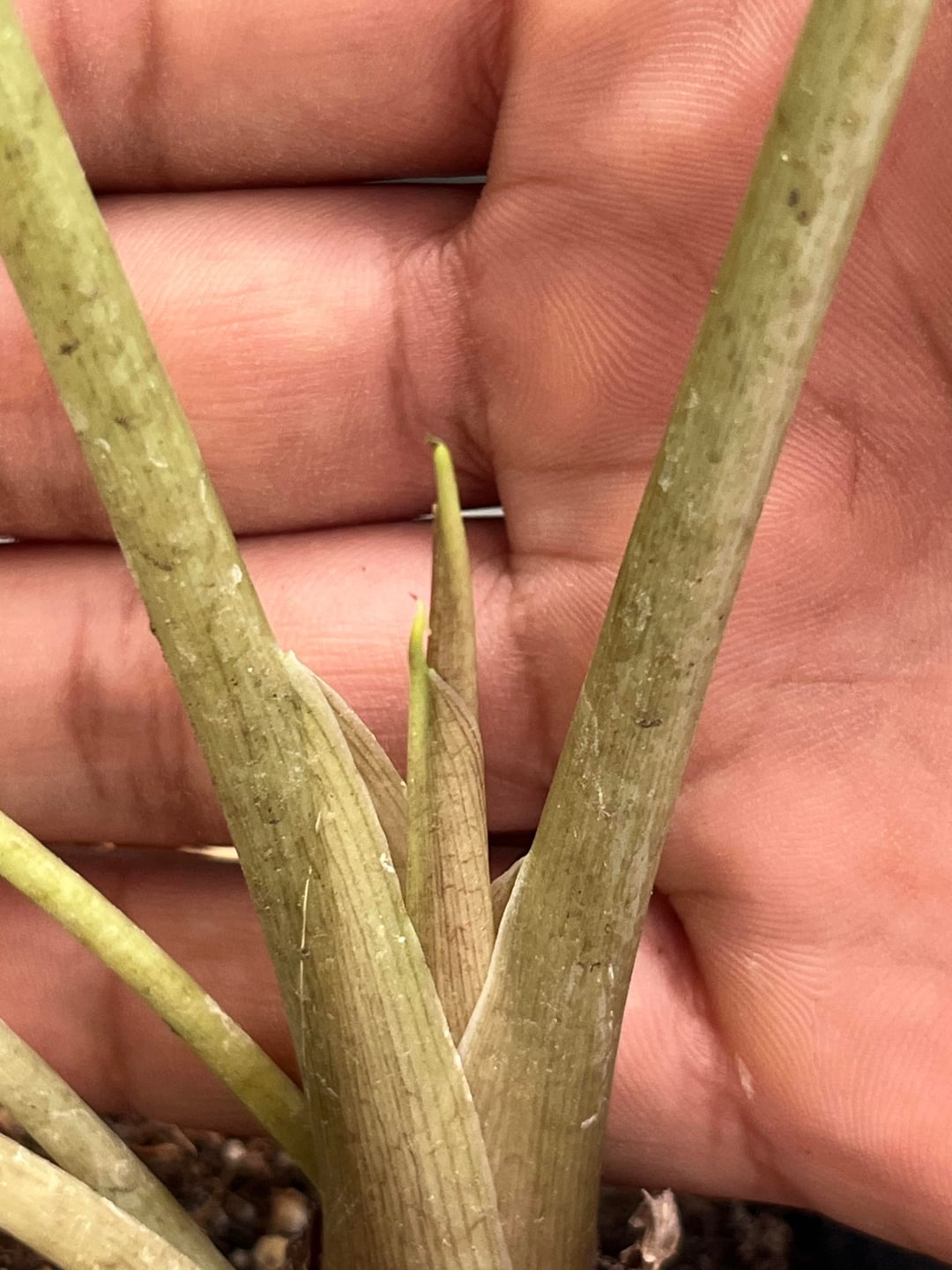 それで、私はこれを1か月前に購入し、完璧な分厚いミックスで1週間後に植え替えをしました。日陰の間接日光に置きました。直射日光はゼロですが、西に面した十分明るい窓。温度は約20〜30℃で、上部2〜3インチでも乾いたら水を与えます。2日前に海藻肥料とフミン酸を与えました。 今何をすべきでしょうか?
