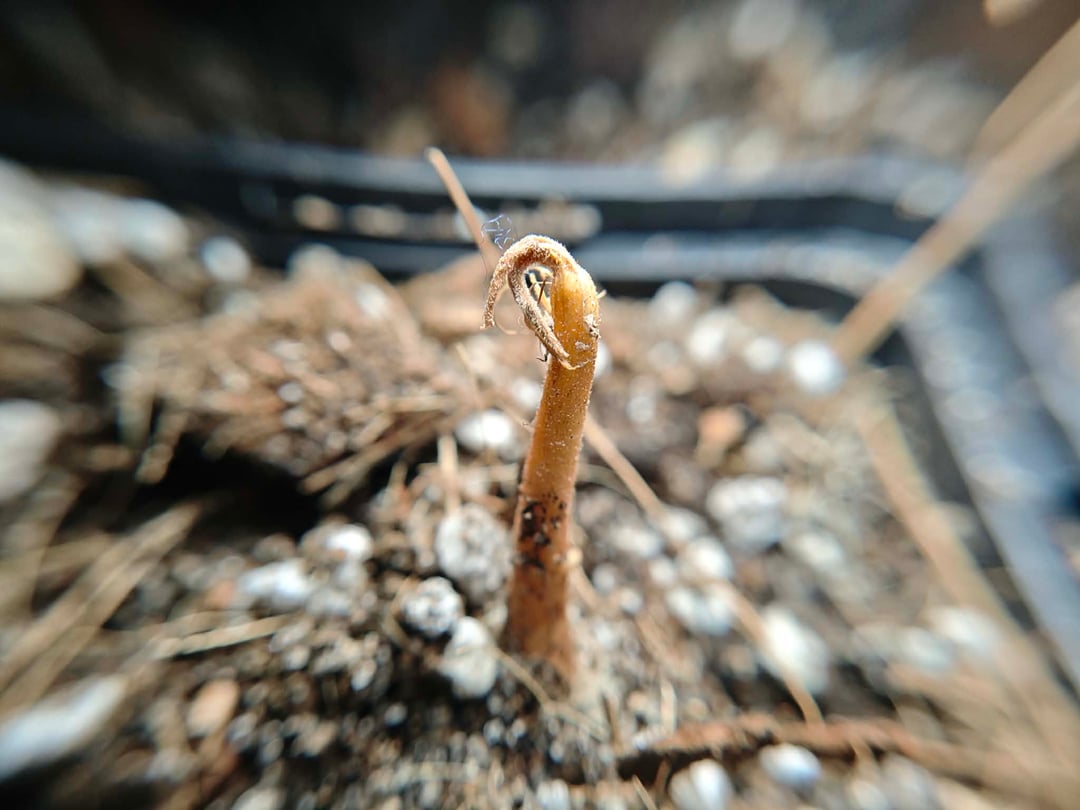 詳細については、今週新芽を受け取りました。見た目は新鮮ではありますが、少し青白く見えました。これは、かなり長い旅を考慮すると当然のことですが、植えたので先端は乾燥しており、茎の長さは約5cm、根の長さは約4cmです。