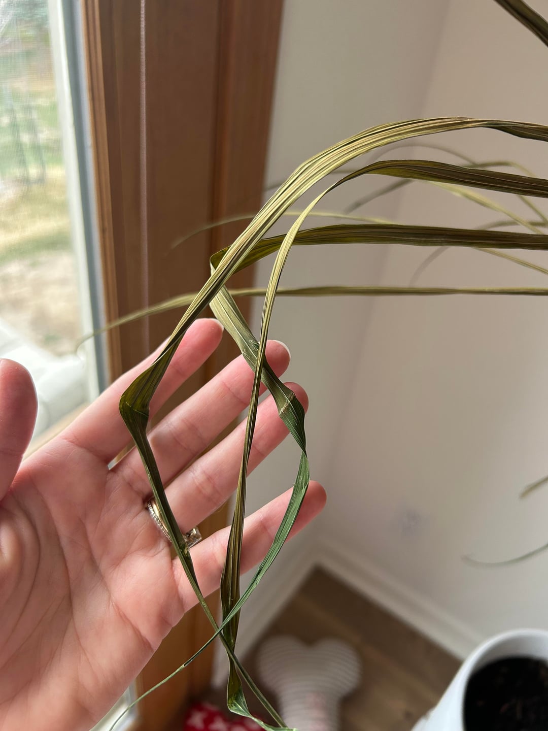 私はこの手のひらを約2週間持っています。土の上部2インチが乾いたら水をやります。この植物は窓から約2フィートの場所にありますが、直射日光が当たるのは毎日午後4時から6時頃だけです。私の何が間違っているのでしょうか?