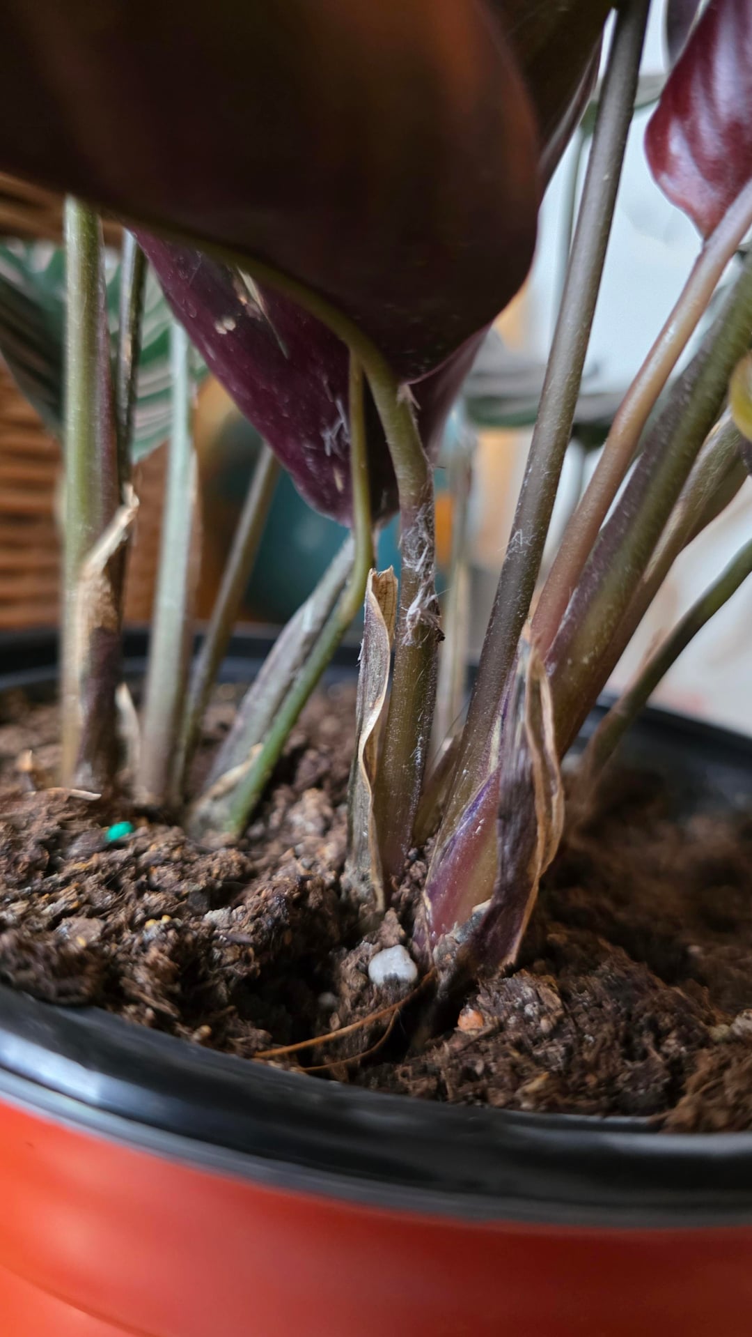 こんにちは!私はカラテアを持っています。数か月前に購入しました。白いモコモコしたものが付いているのに気づきました。水垢のように見えることもありますが(霧吹きしていましたがやめました)、花粉のように見えることもあります。バグは見当たりません。害虫に見えますか?どうもありがとうございます!