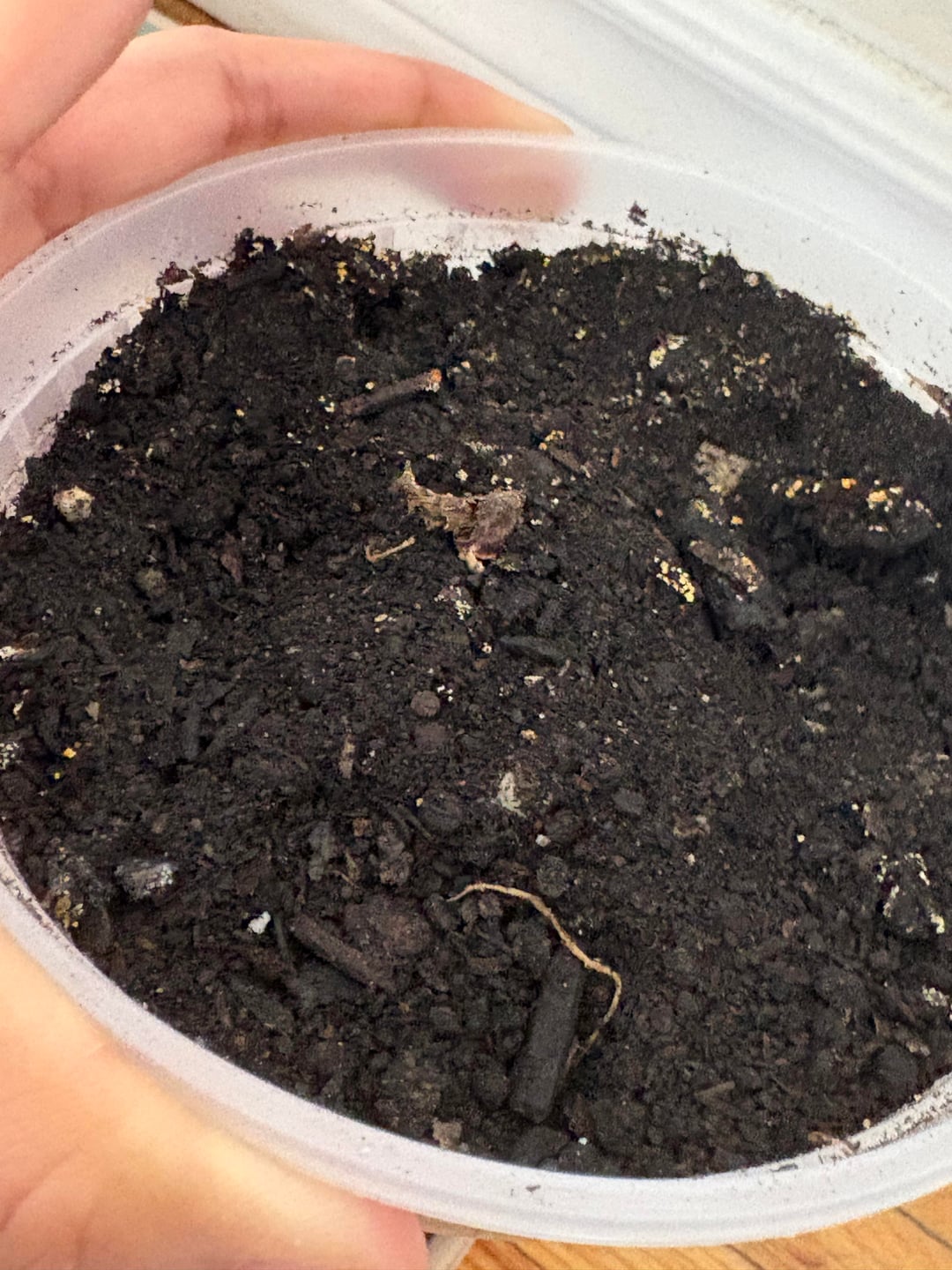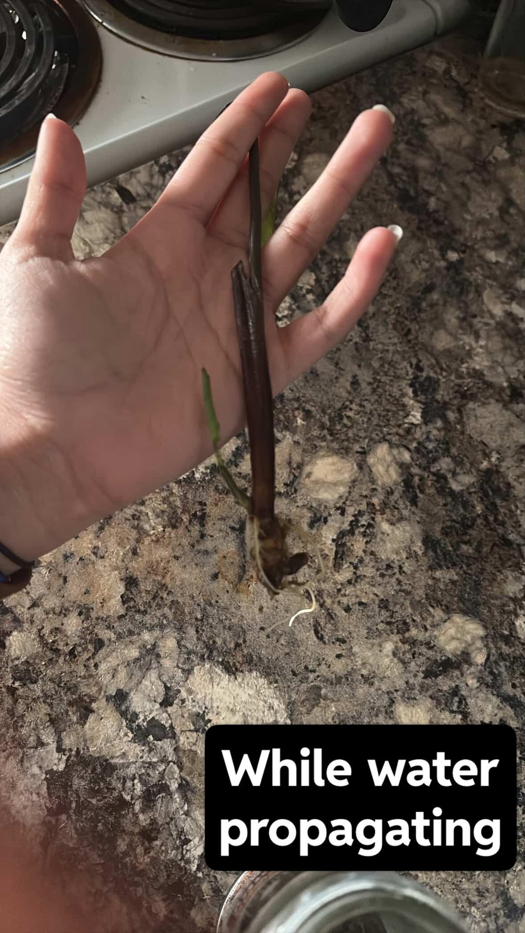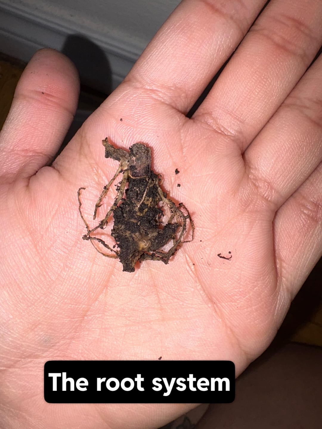 今、植物に残っているのは根系だけですが、それが機能していると思われる唯一のものであるため、水で繁殖できるかどうかさえわかりません。それが私が持っていた中で最小のものだったので、今は持ち帰り用の容器(底に穴が開いている)の1つに鉢植えにしてあります。
