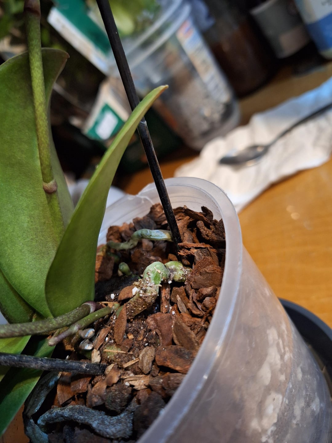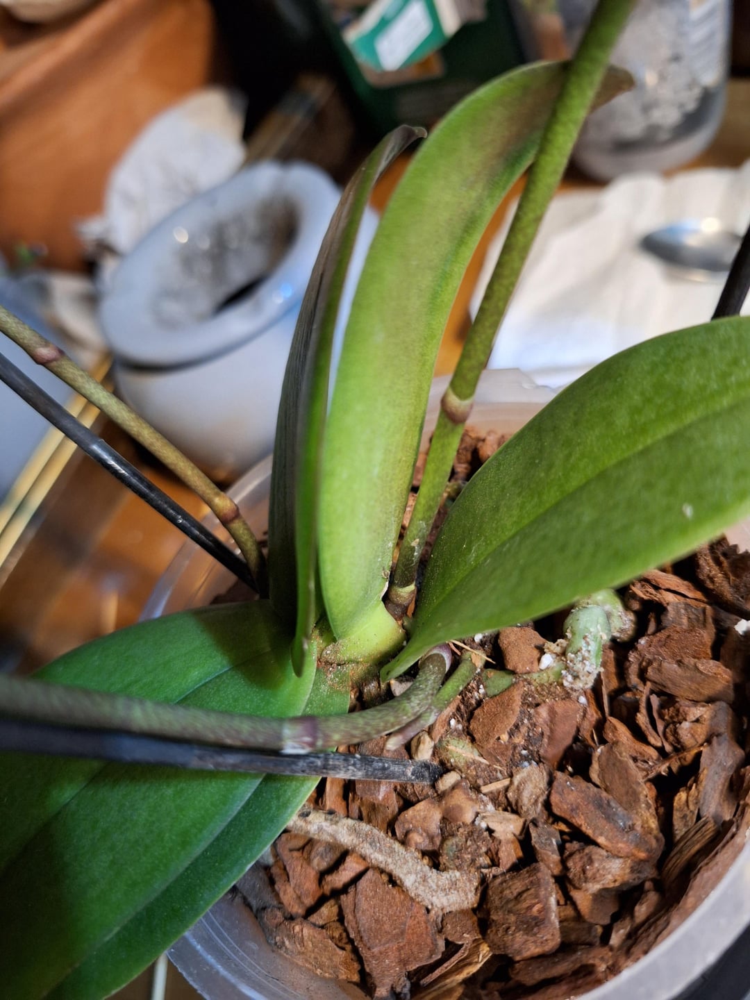 こんにちは、私はここに初めて投稿します。このコミュニティに私を助けてくれる友人がいるといいのですが。 1️⃣それで、2月14日にこの素敵な胡蝶蘭をプレゼントとしてもらいました。ここ数週間、私はアザミウマに対処しなければならなかったし、他の植物が受けたいくつかのダメージは私のせいだった。間違った場所、間違った水やりなどだと思うが、私は最善を尽くしている。どうやらこの植物にはアザミウマがいなかったようで、それは嬉しかったです。しかし、その後、植物の状態が日に日に悪化していることに気づき、ついに私の胡蝶蘭にハダニが発生しているのを見つけました。すぐにそれらを取り除き、植物を安全に保ち始めました。このプロジェクトの最後に、新しい基材を使用した新しい鉢に彼女を植え、彼女が回復するのを見てうれしかったです。 2️⃣翌朝、元気な花を咲かせていた部分だけが残り、他の部分はすべて苦しみ、ばらばらになり、腐ってしまいました。… 3️⃣,4️⃣ また、この2枚の写真では根があり、下地がカビているように見えます。 5️⃣、6️⃣、7️⃣ この3枚の写真で彼女の葉が見えます、そして私はクモダニと私が葉の上で見たすべてのものを取り除いたことをもう一度言います、それは2〜3日前のことでした、そして今誰か教えてください私の考えに同意しますかこれはまたクモダニです…. しかし私は典型的な赤いミニクモを見つけられませんでした(まだMB) この植物の死なないために最も重要な部分は、ハート/王冠、新しい葉が生える部分。葉は元気ではありませんが、新芽の部分は大丈夫だと思います。だから誰か助けてください。最後に私に一言、私はたくさんの植物を持っているので、おそらくこのコミュニティに頻繁に、または時々参加するでしょう 🙂