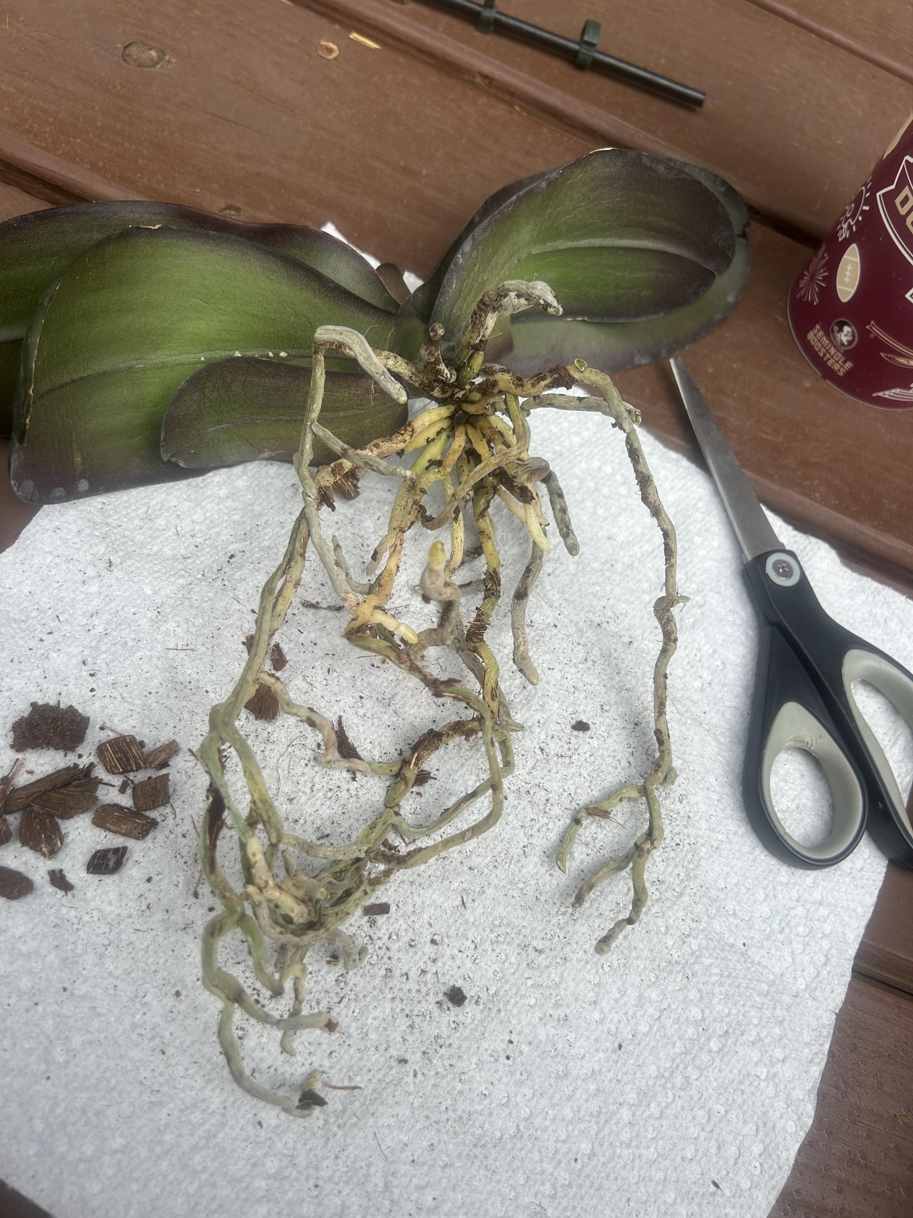 これらの蘭の根は健康ですか、それとも枯れていますか?
