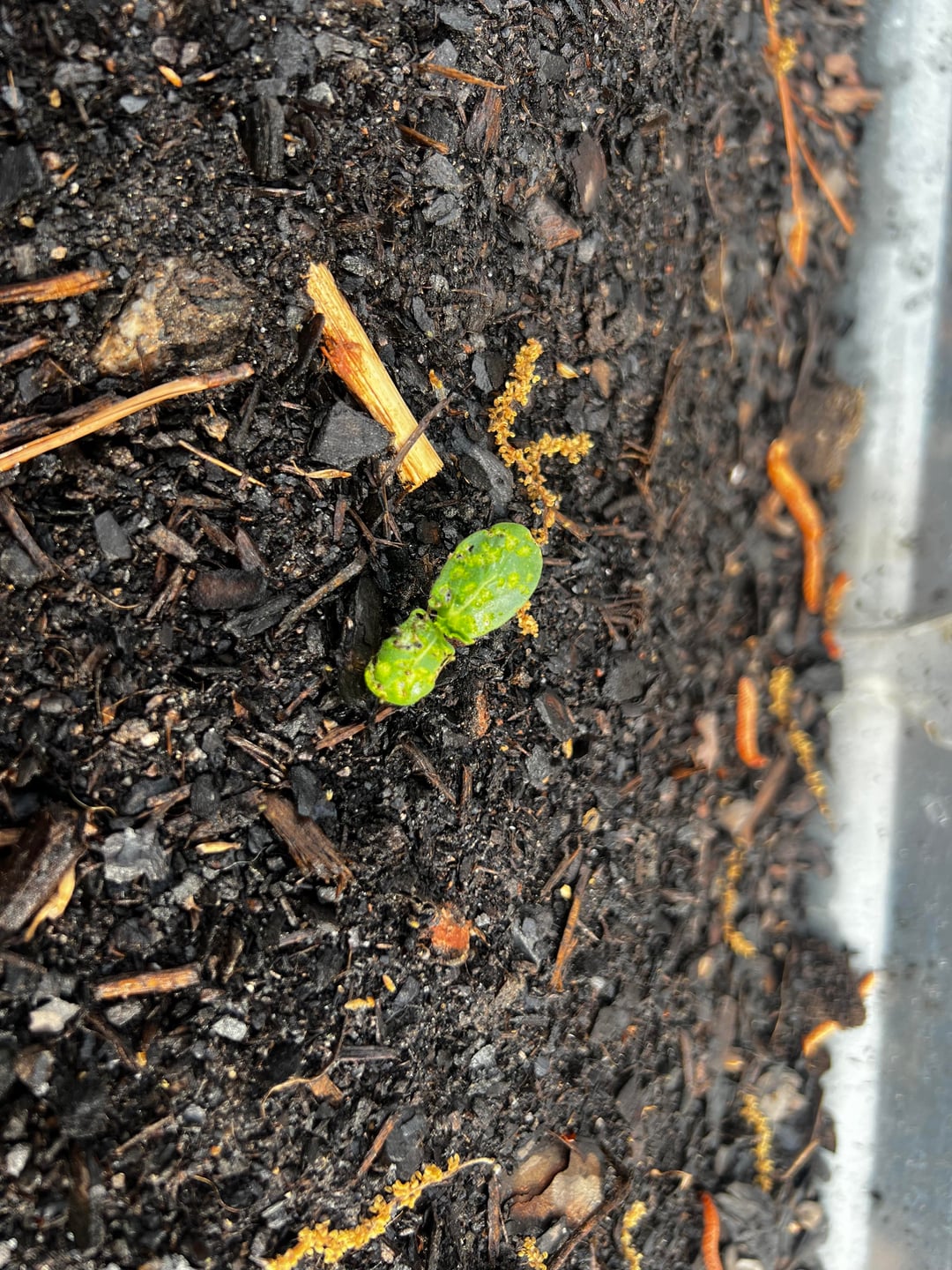 自宅で金属製の容器でキュウリを育ててみました。葉が出始めていますが、すぐに病気になったように見えます(写真を参照)。ホースの水が原因だと思います。修正アクションとは何ですか?