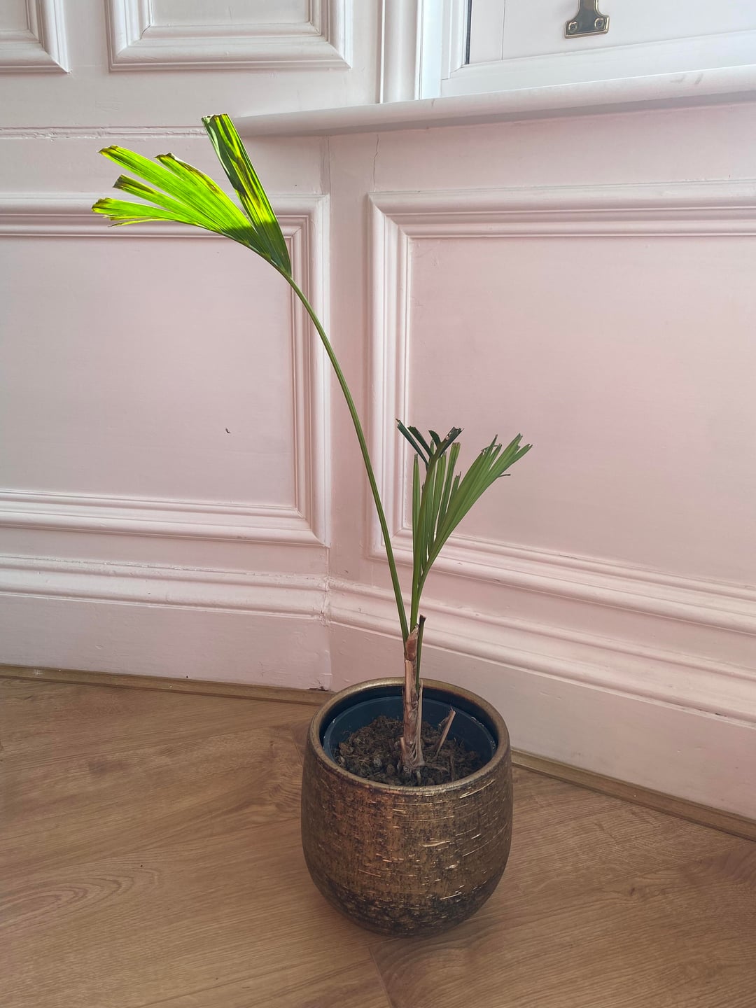 このヤシが再び寿命を迎えることができるかどうかについての意見に感謝します。葉先が茶色くなったり、猫に噛まれたりした葉はトリミングする必要がありました。ありがとう。