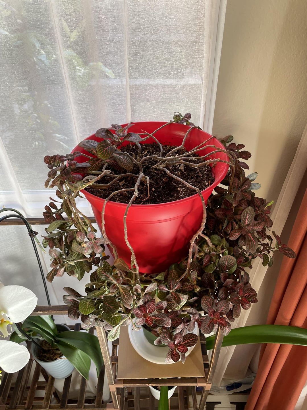 フィットニアは照明に恵まれない場所にあり、明らかにできるだけ多くの光を求めて成長しました。 群葉は美しいですが、明らかに脚が長いので、あまり奇抜に見えないようにしたいと思っています。